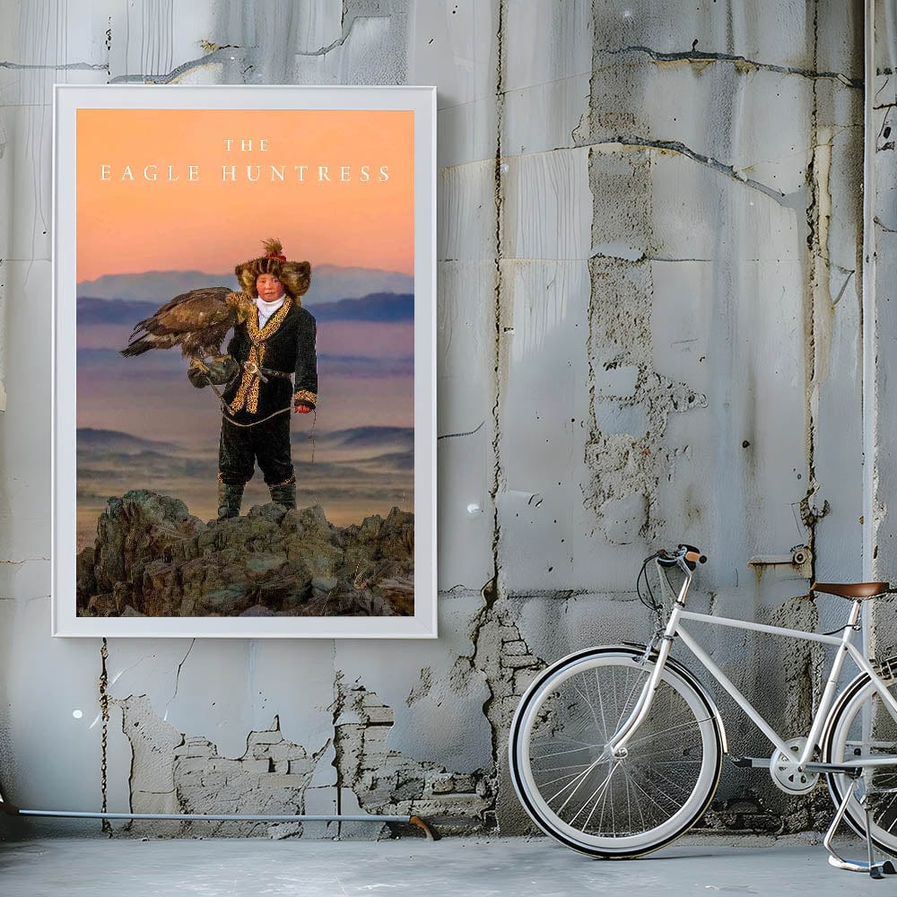 Celebrate courage and tradition with this vintage 2010s movie poster from The Eagle Huntress. This retro movie poster showcases the breathtaking imagery of a young Mongolian girl mastering the ancient art of eagle hunting, set against a stunning mountain landscape at sunrise. A true representation of resilience and empowerment, this classic 2010s poster is perfect for lovers of adventure and documentary films.