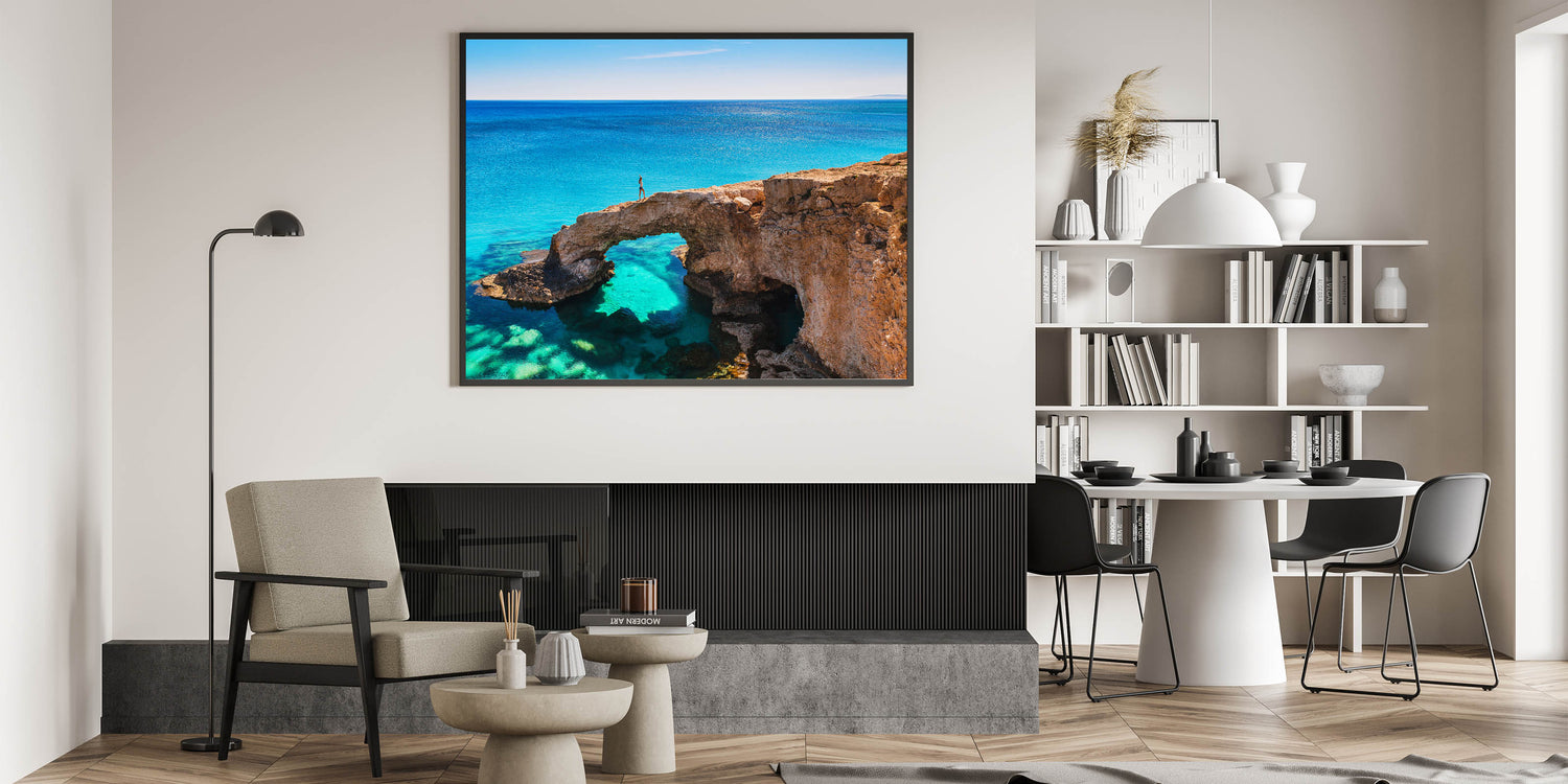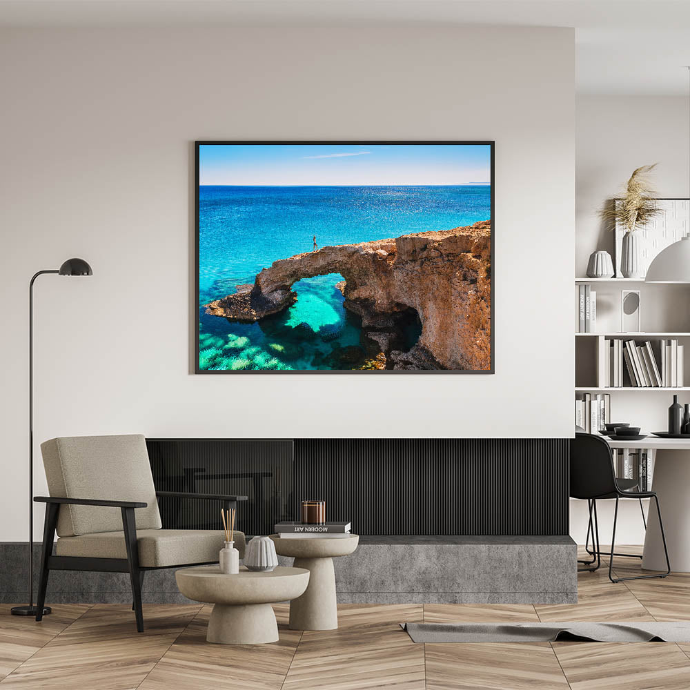 Explore the natural majesty of Cyprus with our "Majestic Sea Arch View" canvas art, part of our Cyprus Scenery By Region collection. This artwork captures the awe-inspiring beauty of a sea arch, a remarkable natural formation that stands as a gateway to the crystal-clear waters of the Mediterranean.