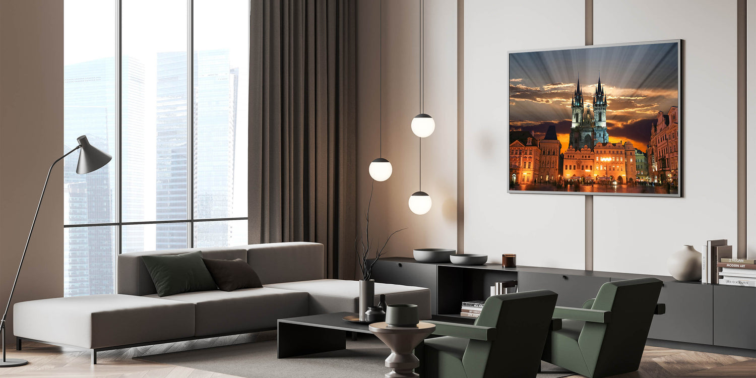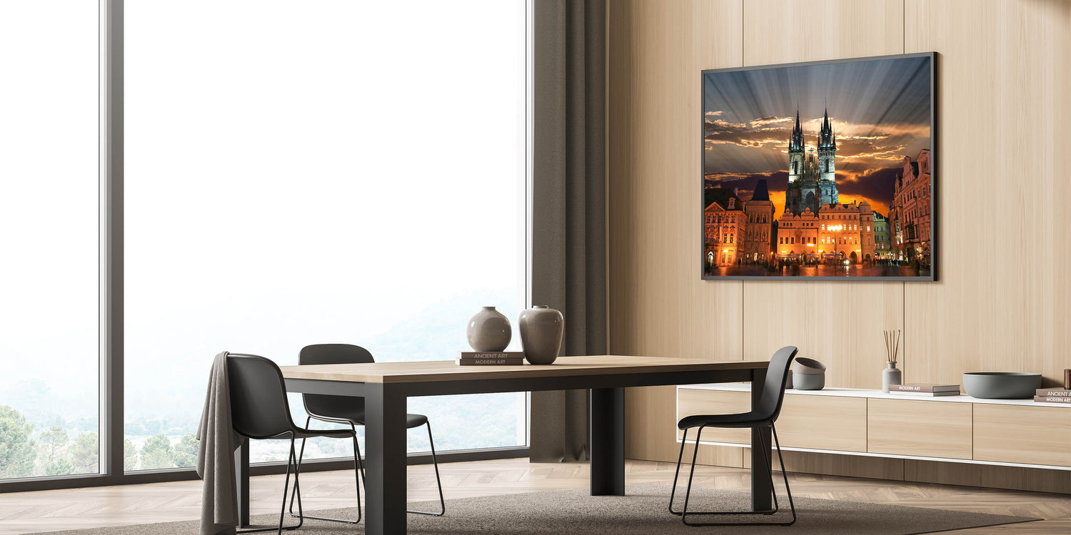 - Available as stretched canvas, framed canvas, or acrylic glass