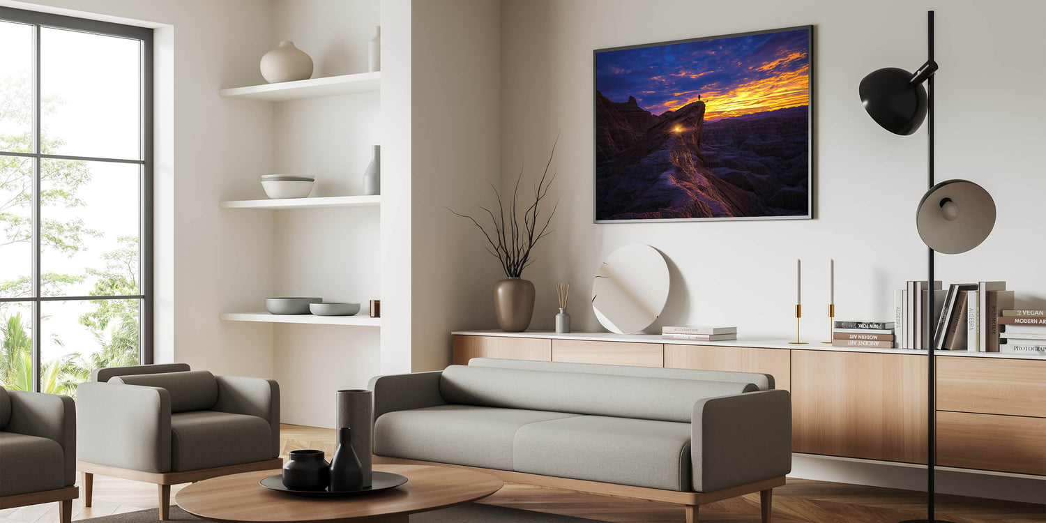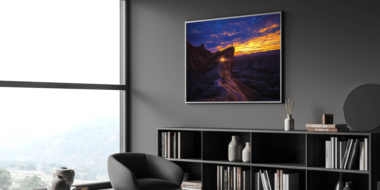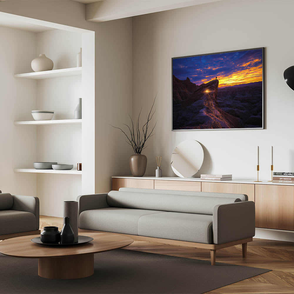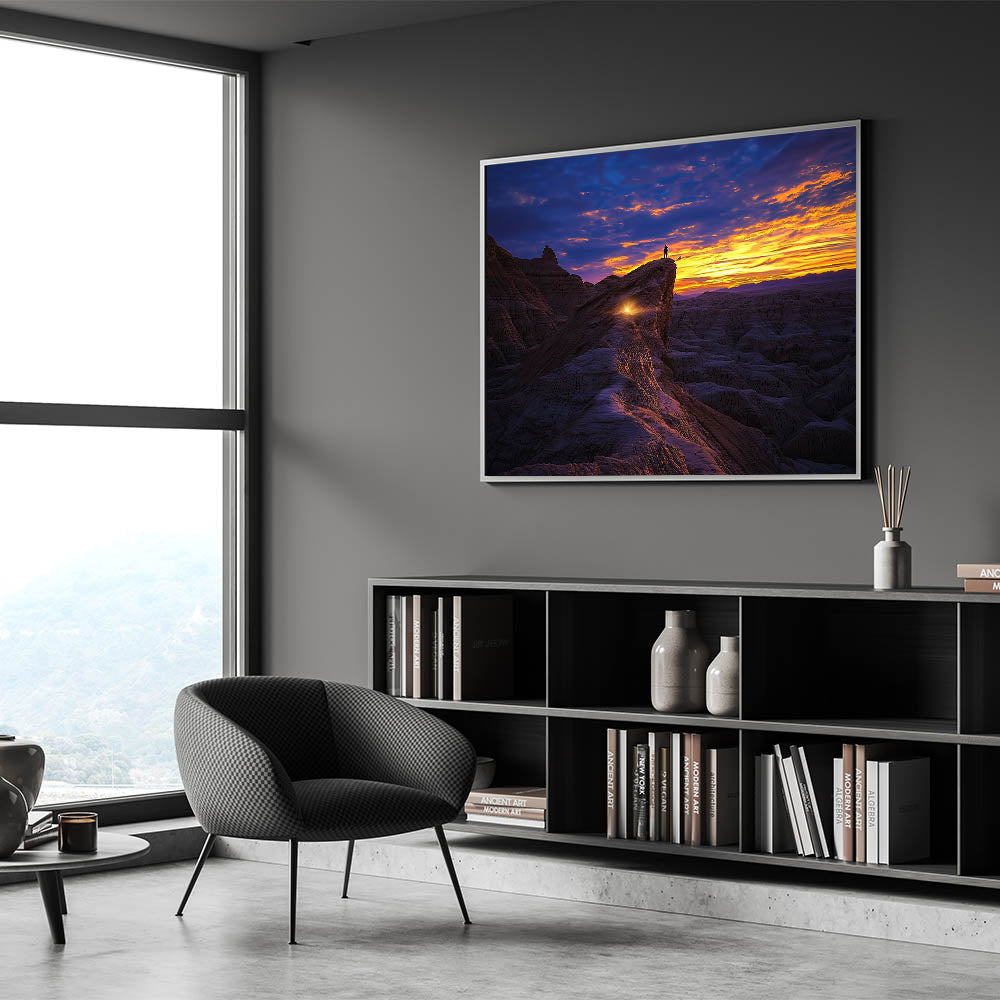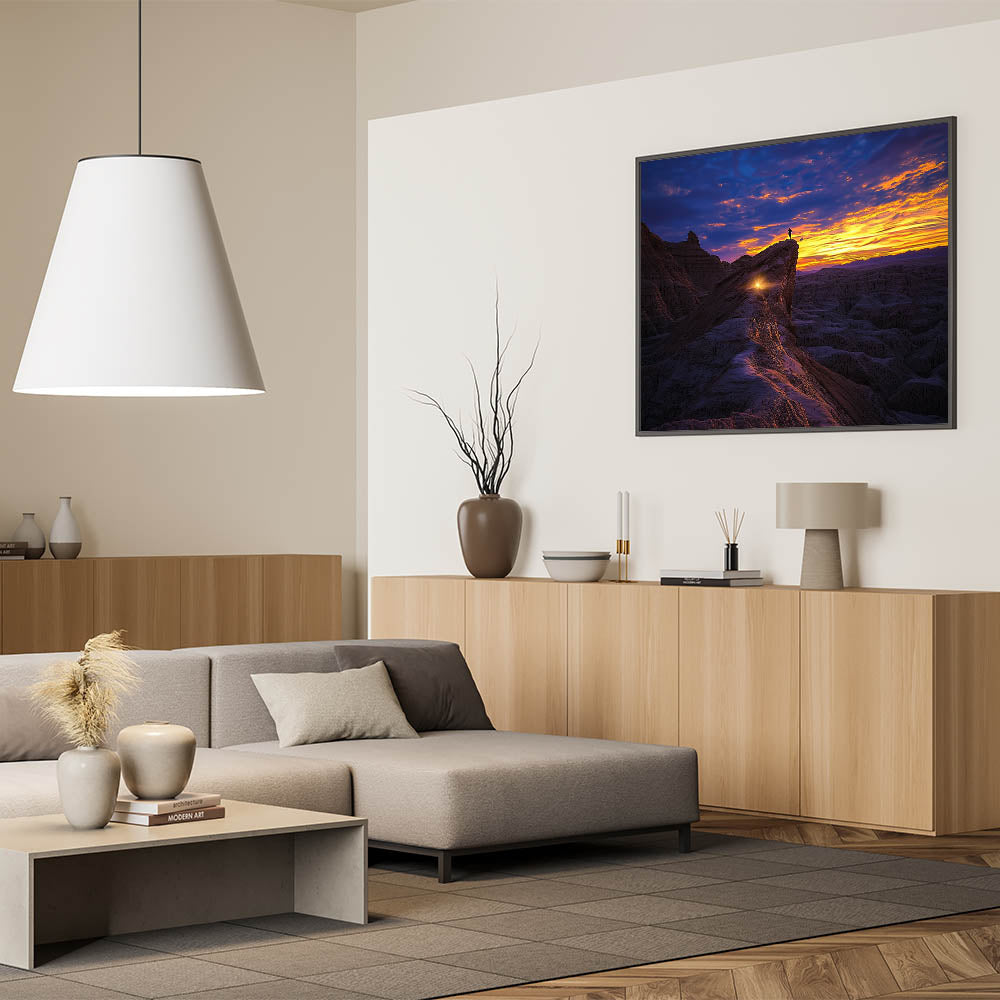 Bring a sense of adventure and wonder into your home or office with this stunning desert landscape art. Perfect as a striking focal point or a meaningful gift, this piece celebrates the beauty of exploration and nature's grandeur.