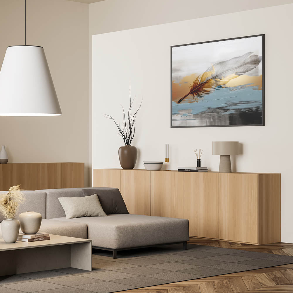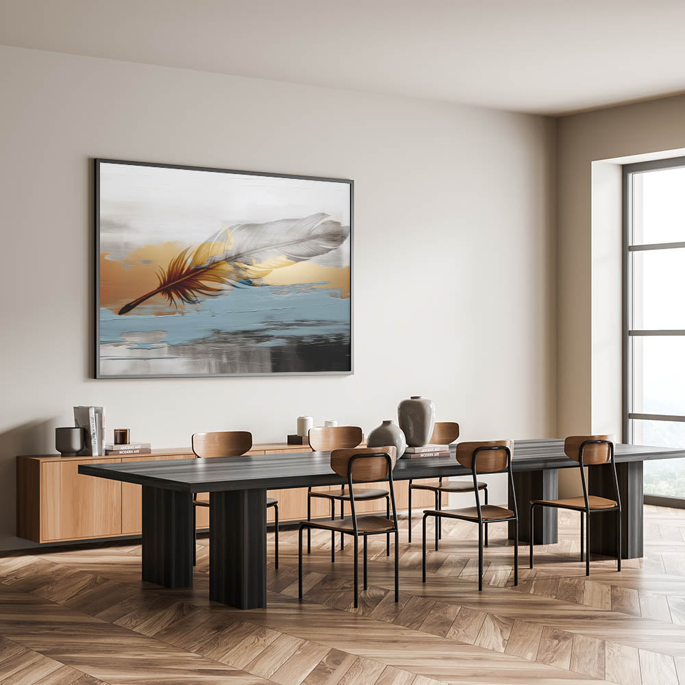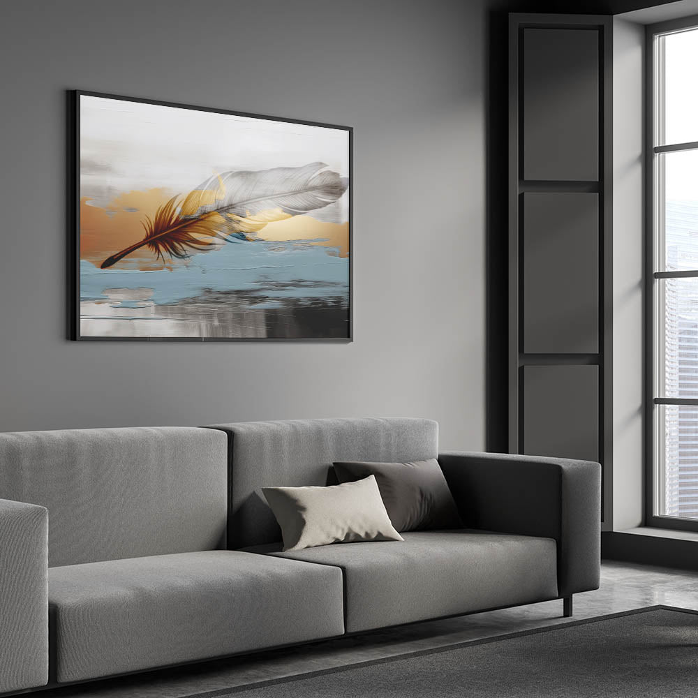 Add a touch of elegance and tranquility to your space with this Elegant Strokes and Lines Abstract Art, featuring a delicate feather floating against a backdrop of soft, abstract brush strokes. This piece is designed to evoke a sense of calm and serenity, making it a perfect addition to bedrooms, living rooms, or any space where you want to create a peaceful ambiance. The subtle blend of colors and the intricate detail of the feather make this artwork a standout piece in any modern or contemporary decor.