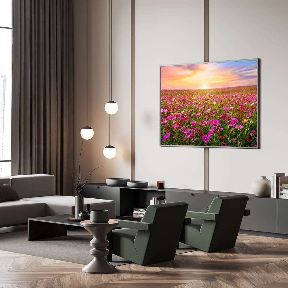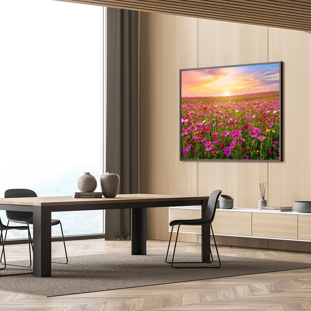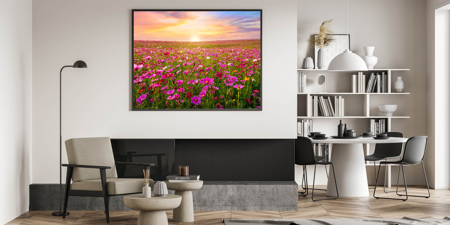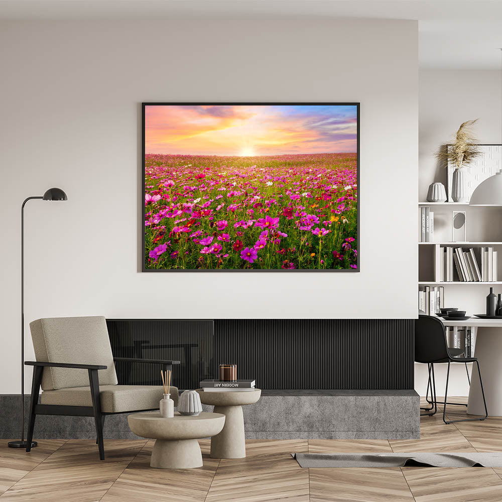 • Vivid, High-Definition Print: Showcases the intricate details and bright colors of a blooming meadow under a sunset sky.