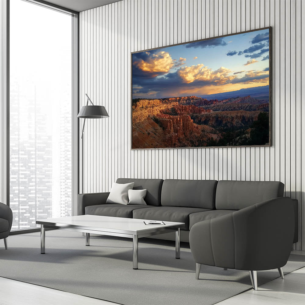- High-Resolution Imagery: Brilliantly displays the vibrant colors of golden hour canyon views.