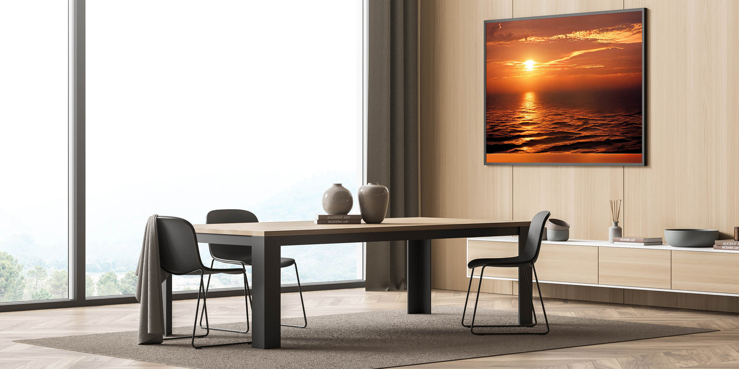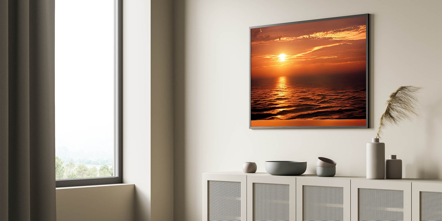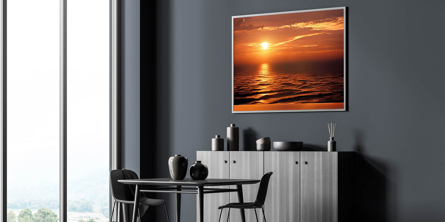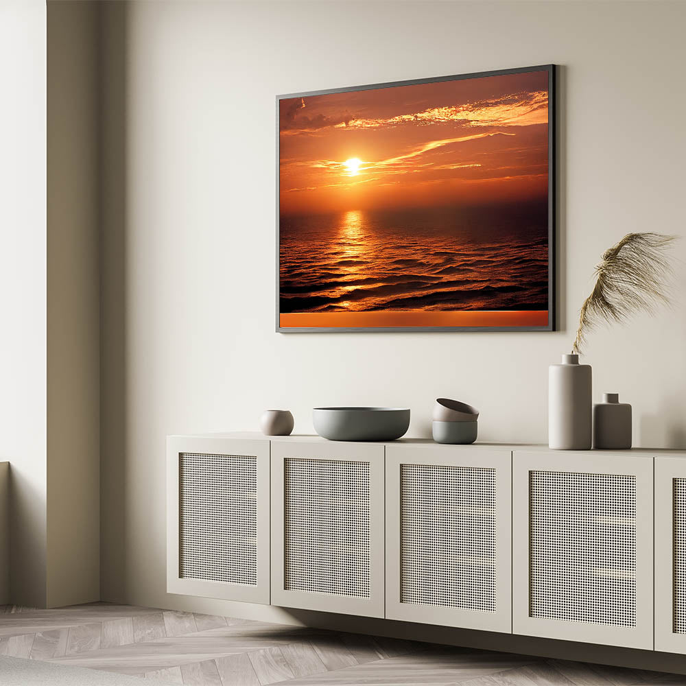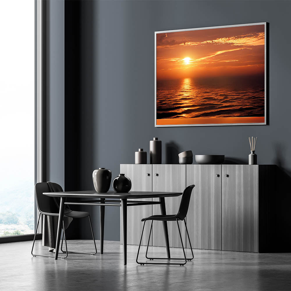 Enhance your living space with this stunning sunset seascape artwork, and let the golden hues of the ocean bring warmth and tranquility into your home. Order today to enjoy a piece of coastal beauty every day.