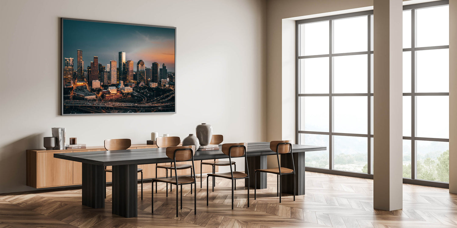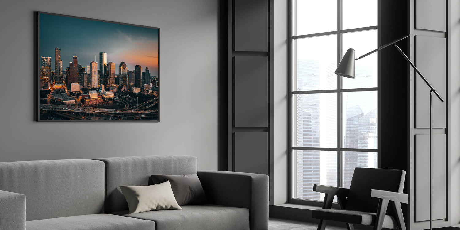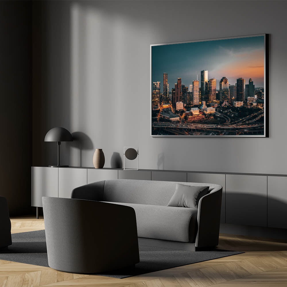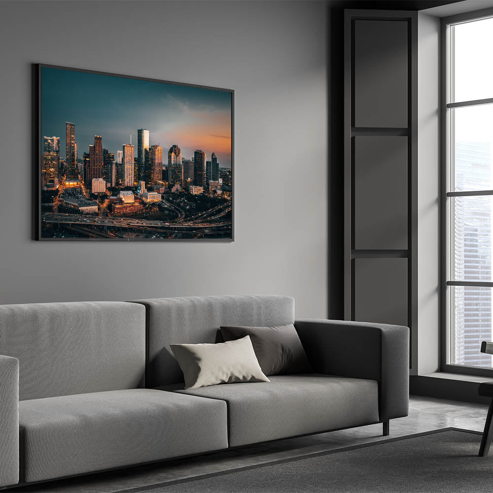 - High-Quality Print: Available on premium materials like stretched canvas, acrylic glass, and framed prints, this Houston skyline art ensures crisp details and vibrant colors that will stand the test of time.
