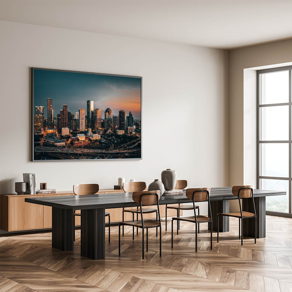 - Customizable Sizes: Offered in multiple sizes, this Houston cityscape photography can be tailored to fit any wall space, from small nooks to large statement walls.