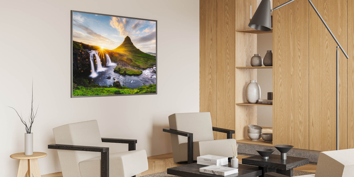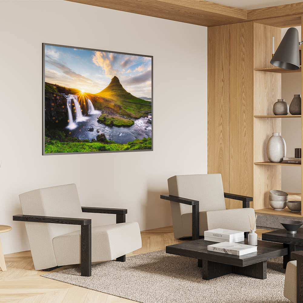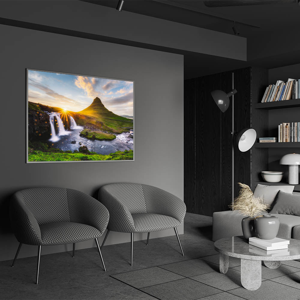 Transform your space with the majestic beauty of Kirkjufell and its surrounding nature. This piece is perfect for those who love the outdoors and want to bring a piece of Iceland’s awe-inspiring scenery into their home.