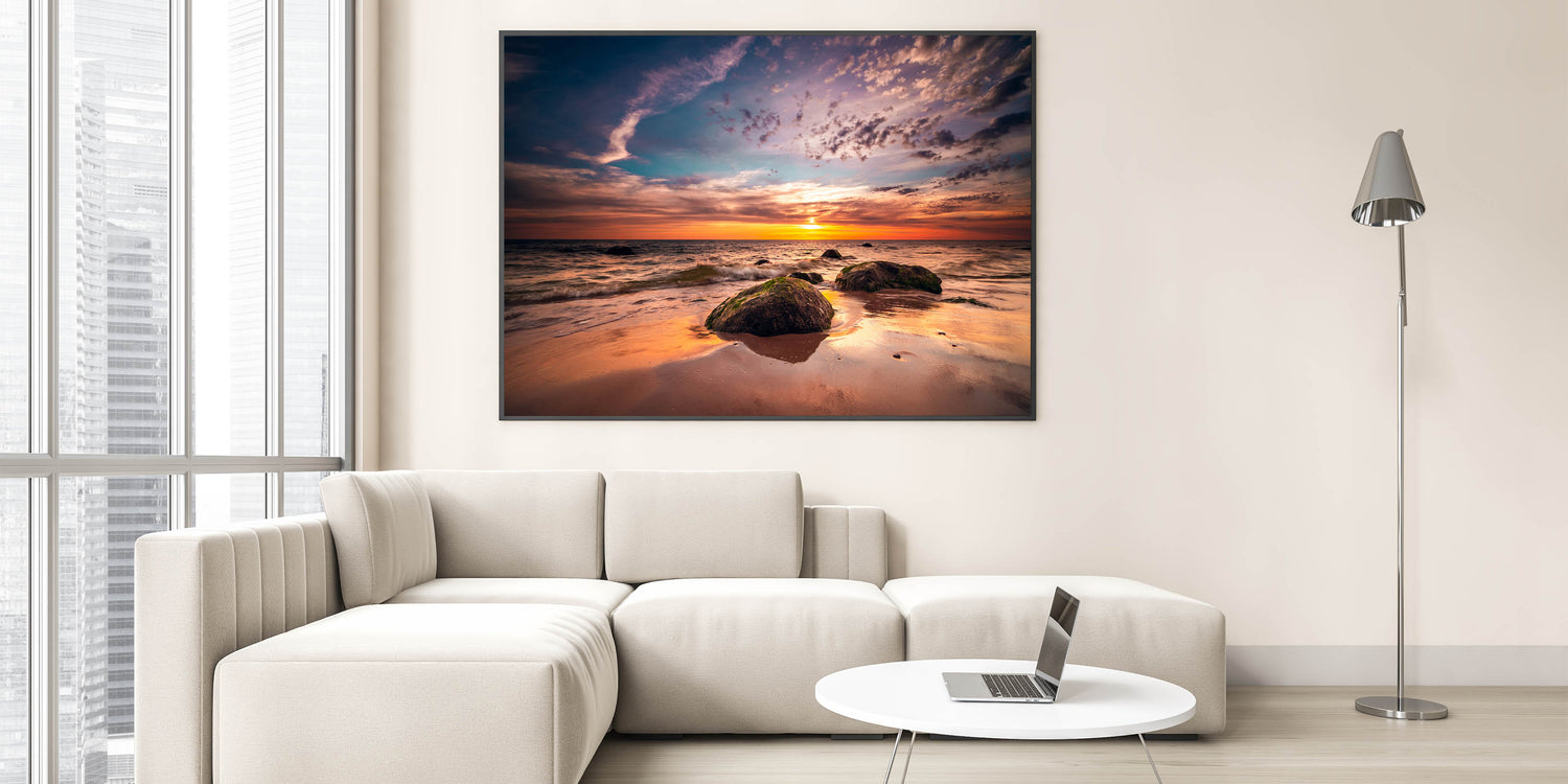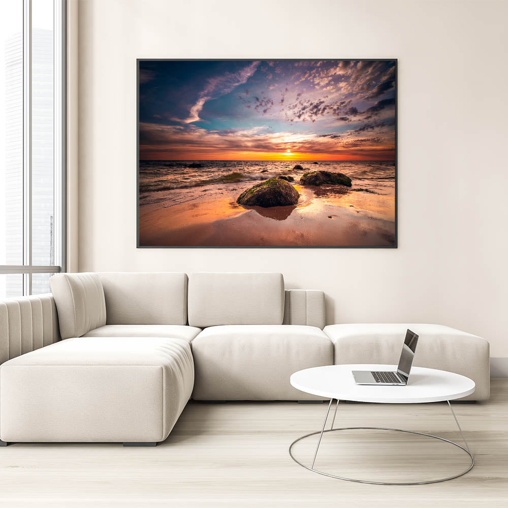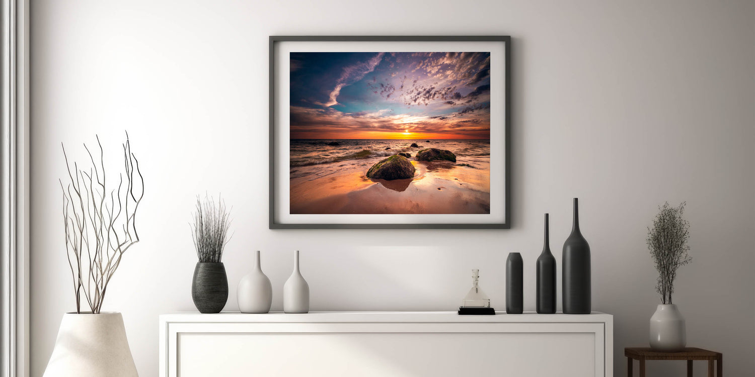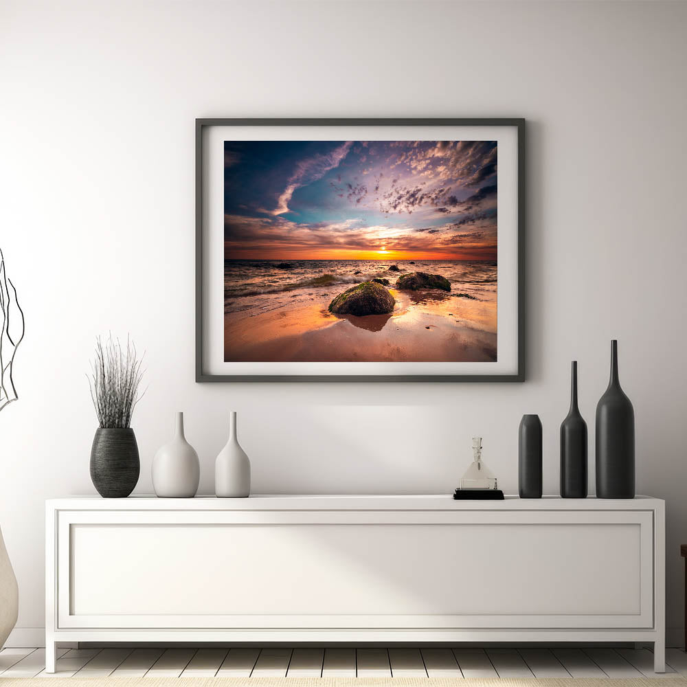 - High-resolution print of an authentic Baltic Sea sunset.
