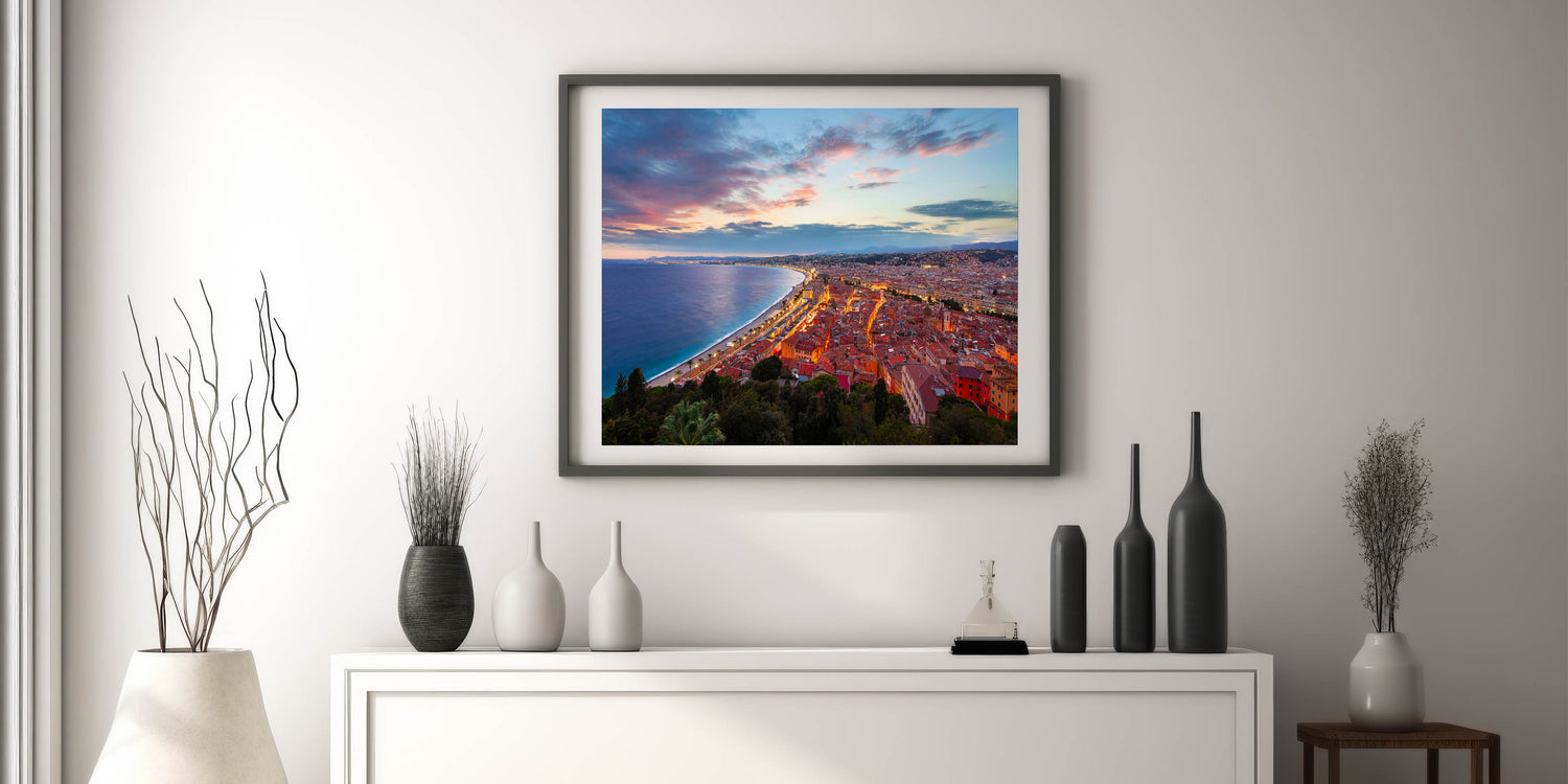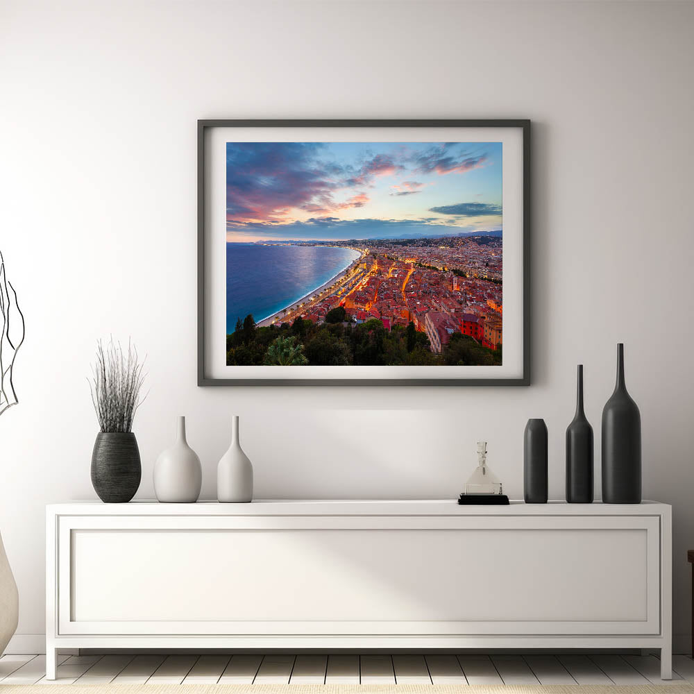 Whether you want to capture the peaceful ambiance of a coastal sunset or add a vibrant view of a European city to your space, this Beautiful Nice France Print is the perfect choice for art lovers and decorators alike.
