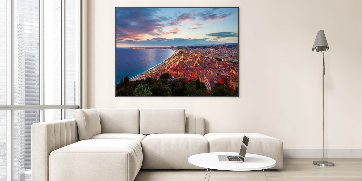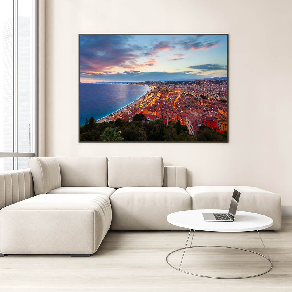 Nice France Wall Decor - Sunset Cityscape and Coastline View Print