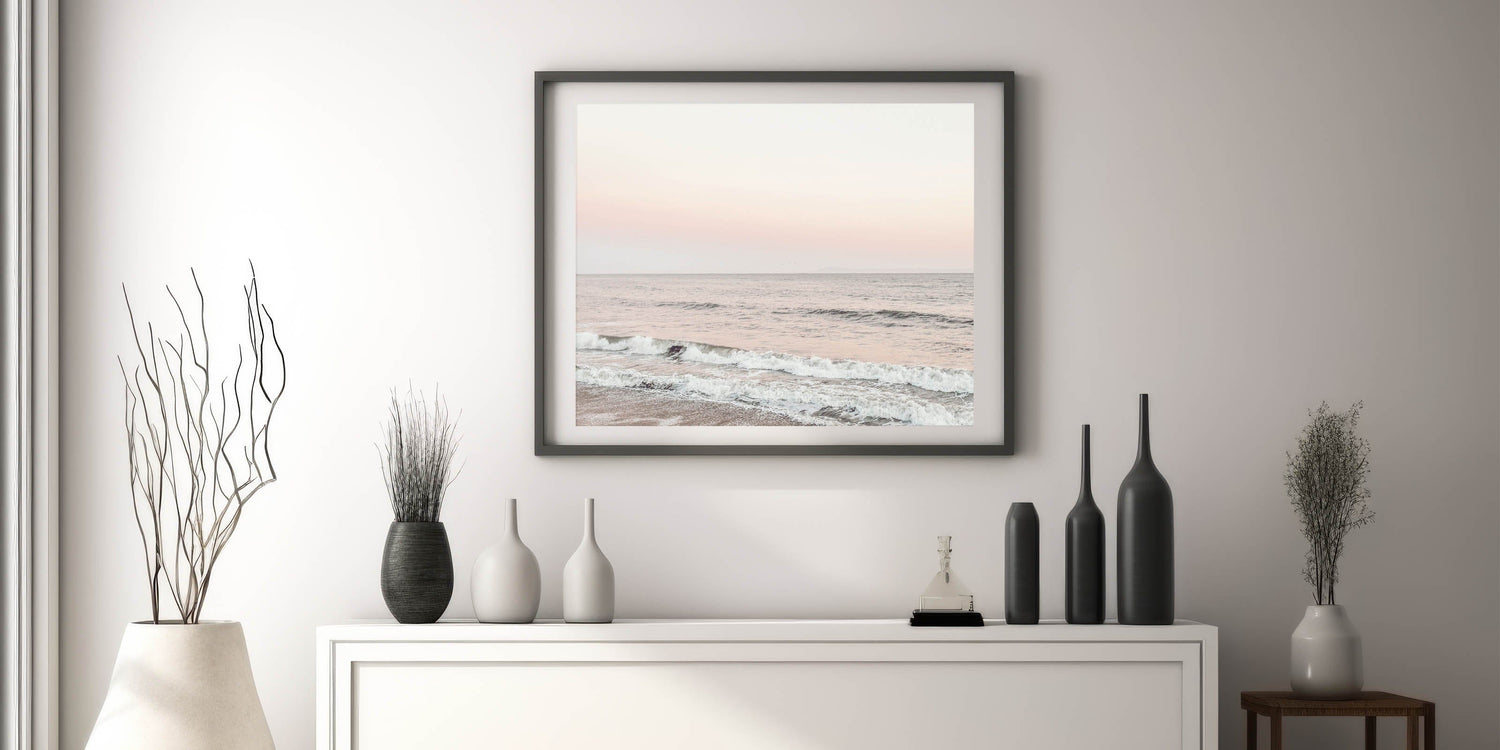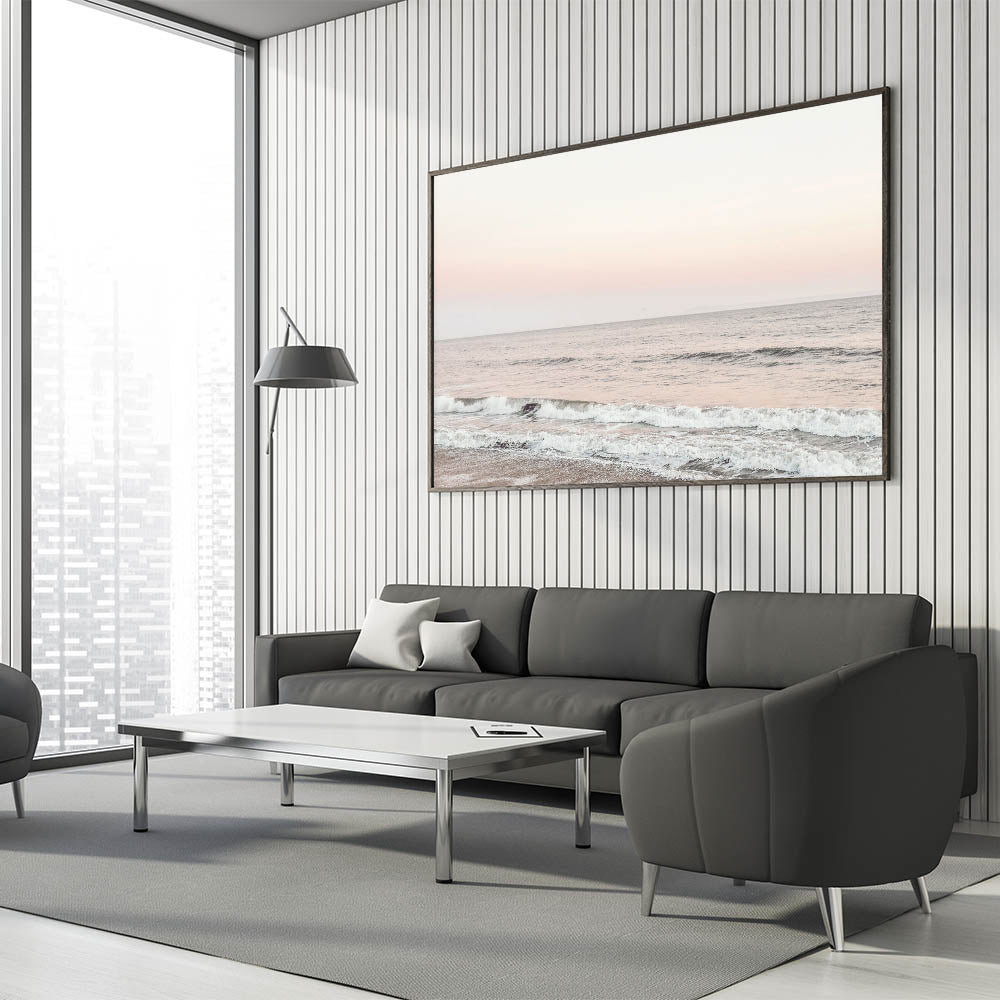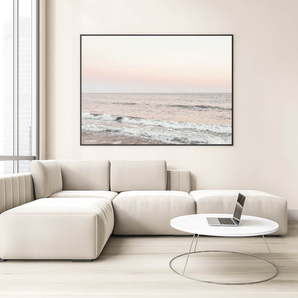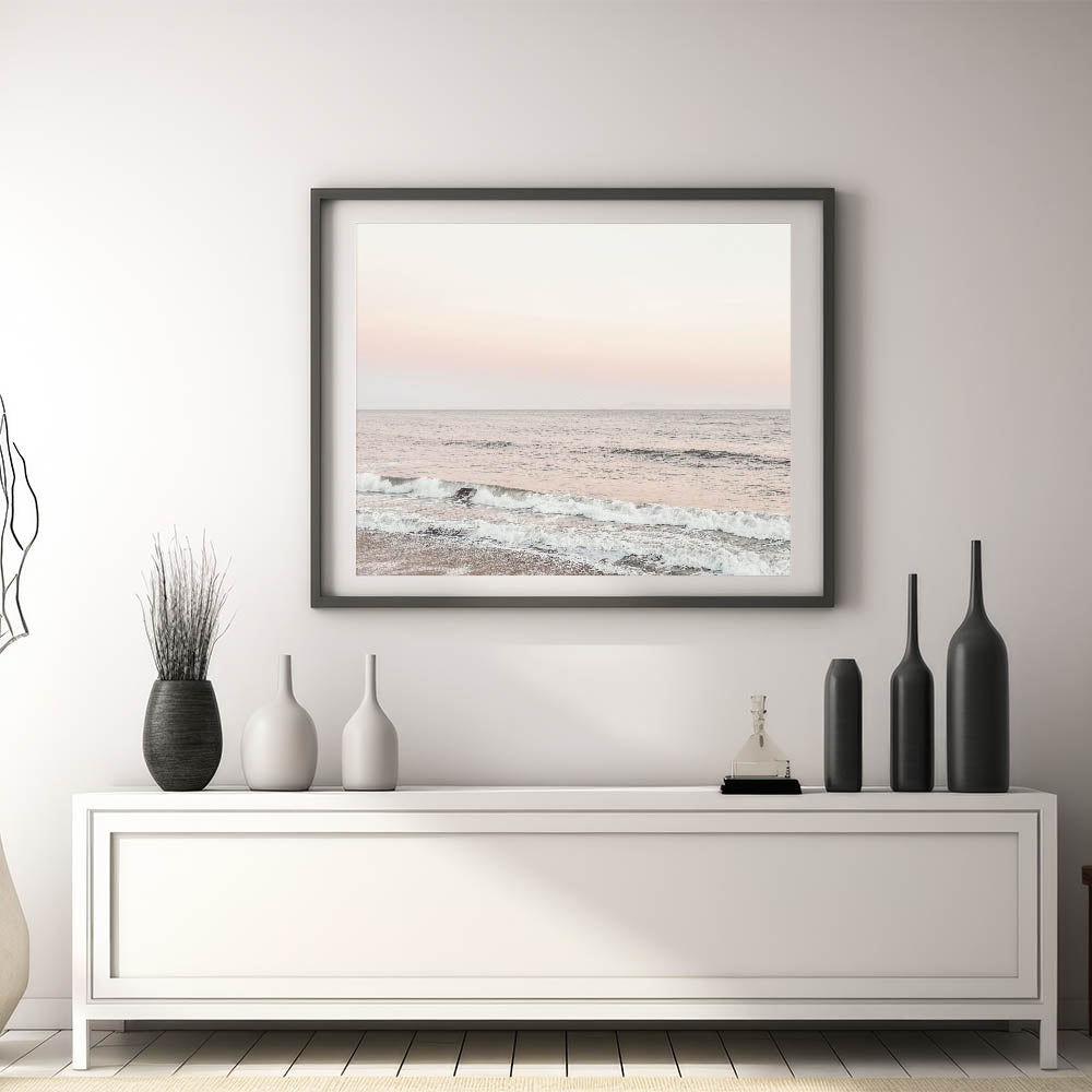 Bring the soothing beauty of a pastel beach sunset into your space with the Pastel Ocean Horizon summer wall art. Featuring soft waves lapping at the shore under a gently painted pink and peach sky, this artwork captures the essence of relaxing summer landscapes. Perfect for creating a peaceful, vacation-inspired atmosphere, it’s an ideal choice for seasonal home decor.