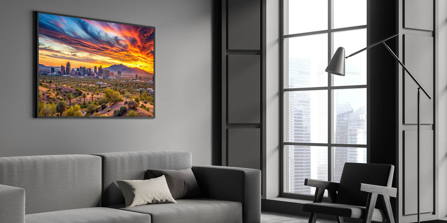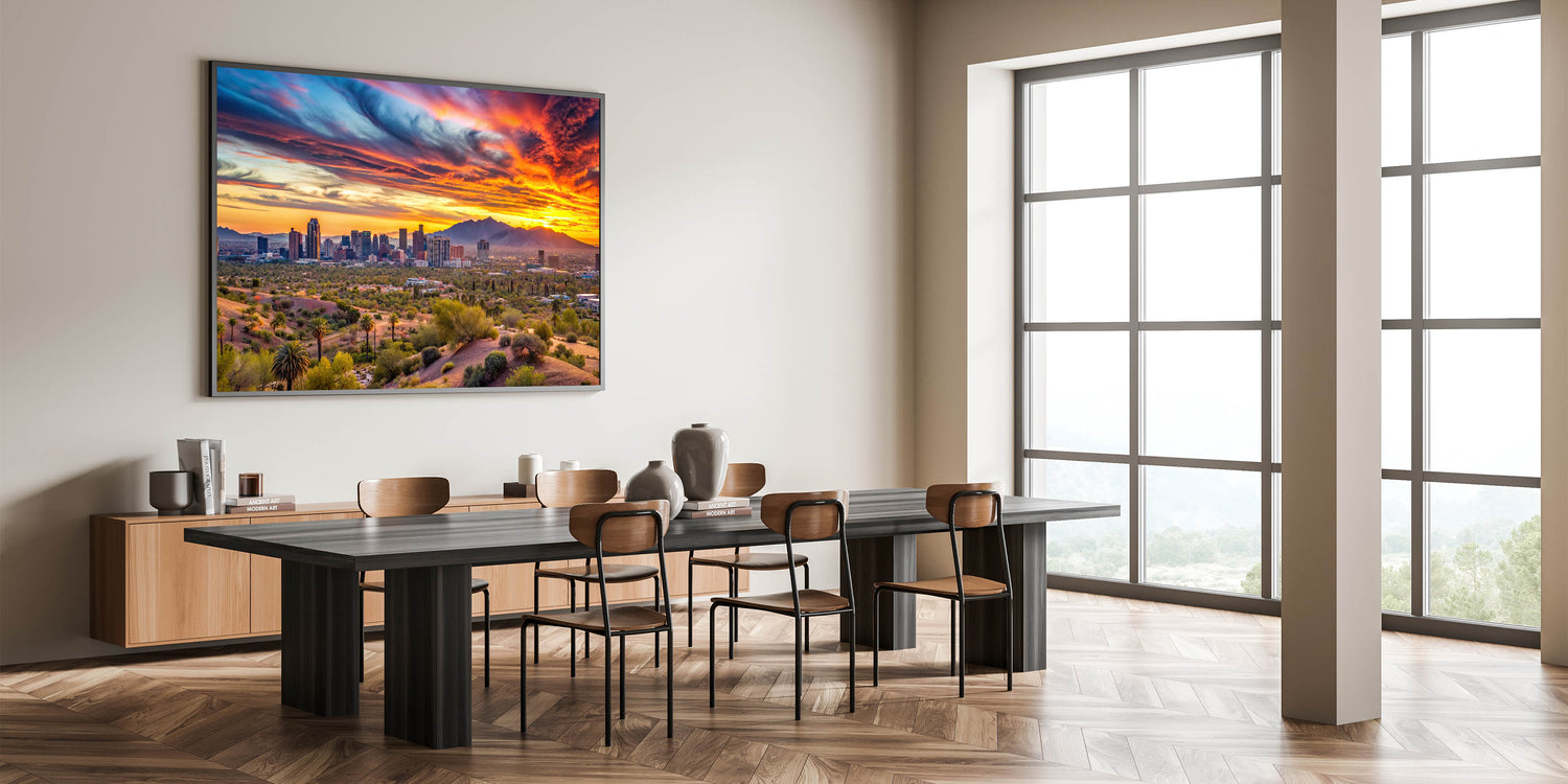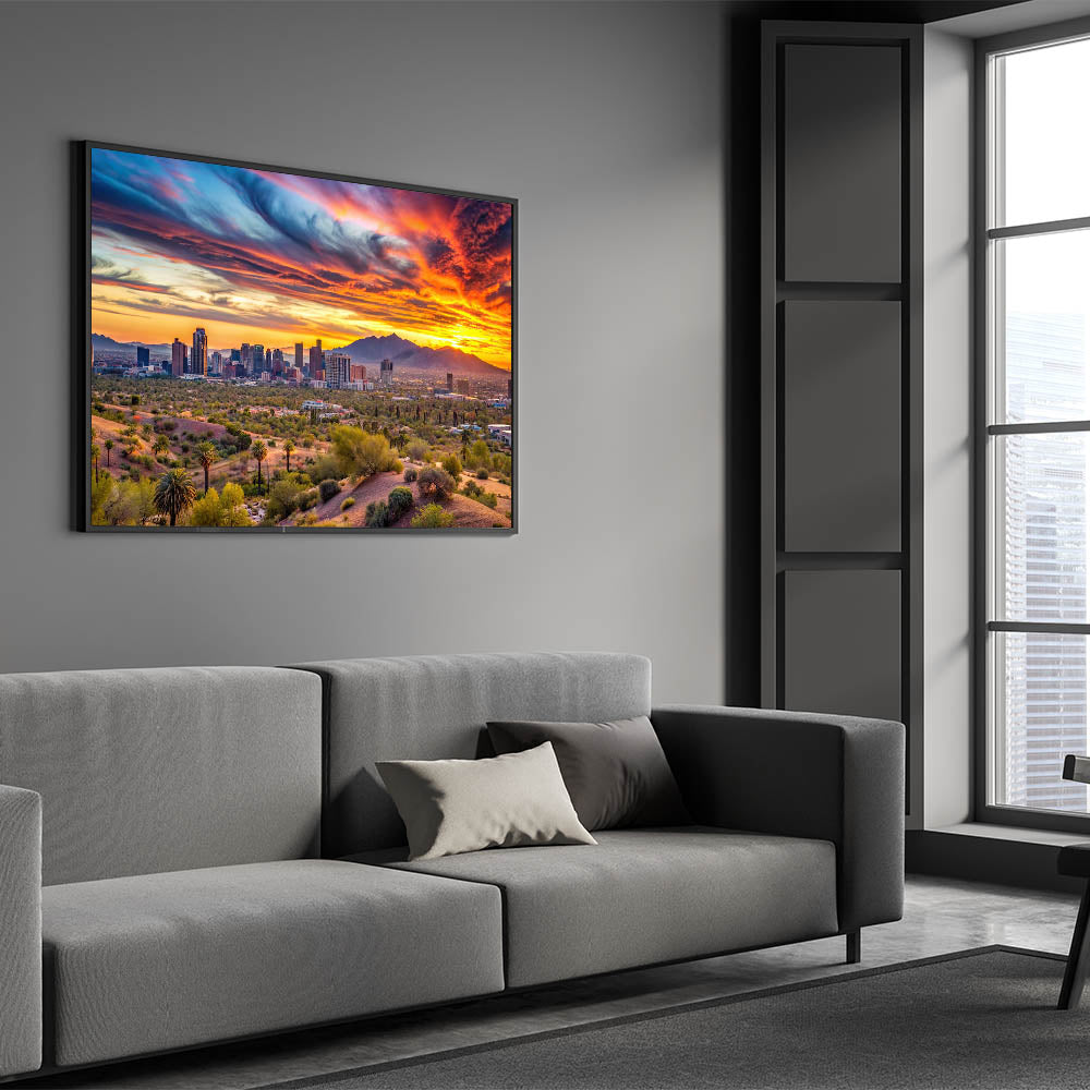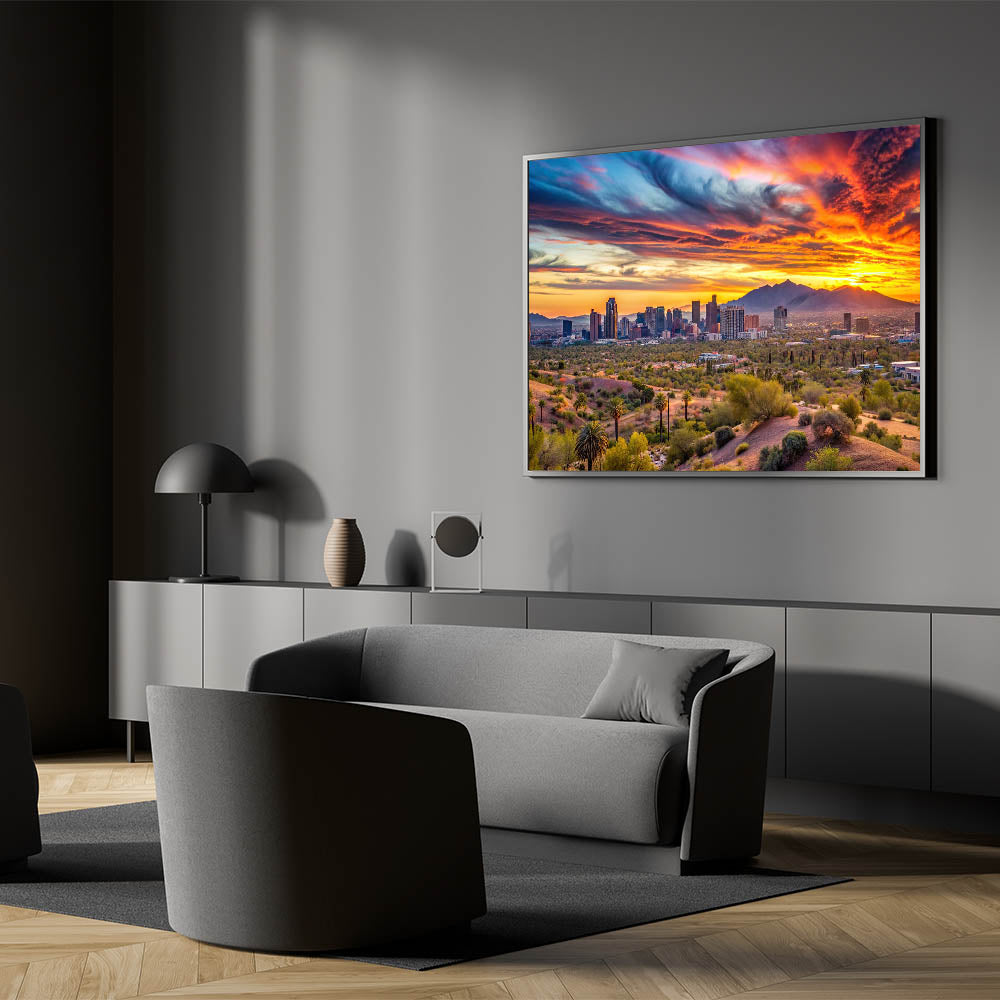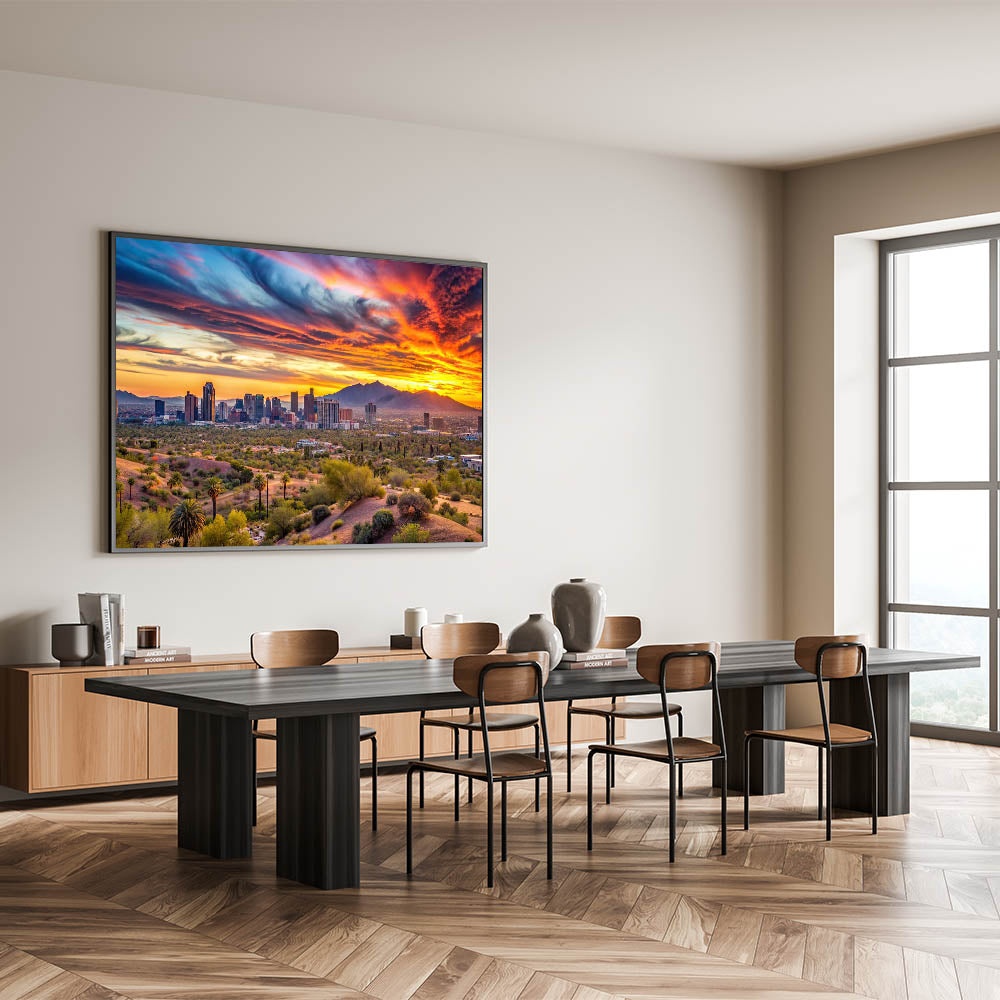 Phoenix Skyline Wall Art | Dramatic Sunset Cityscape with Desert Landscape
