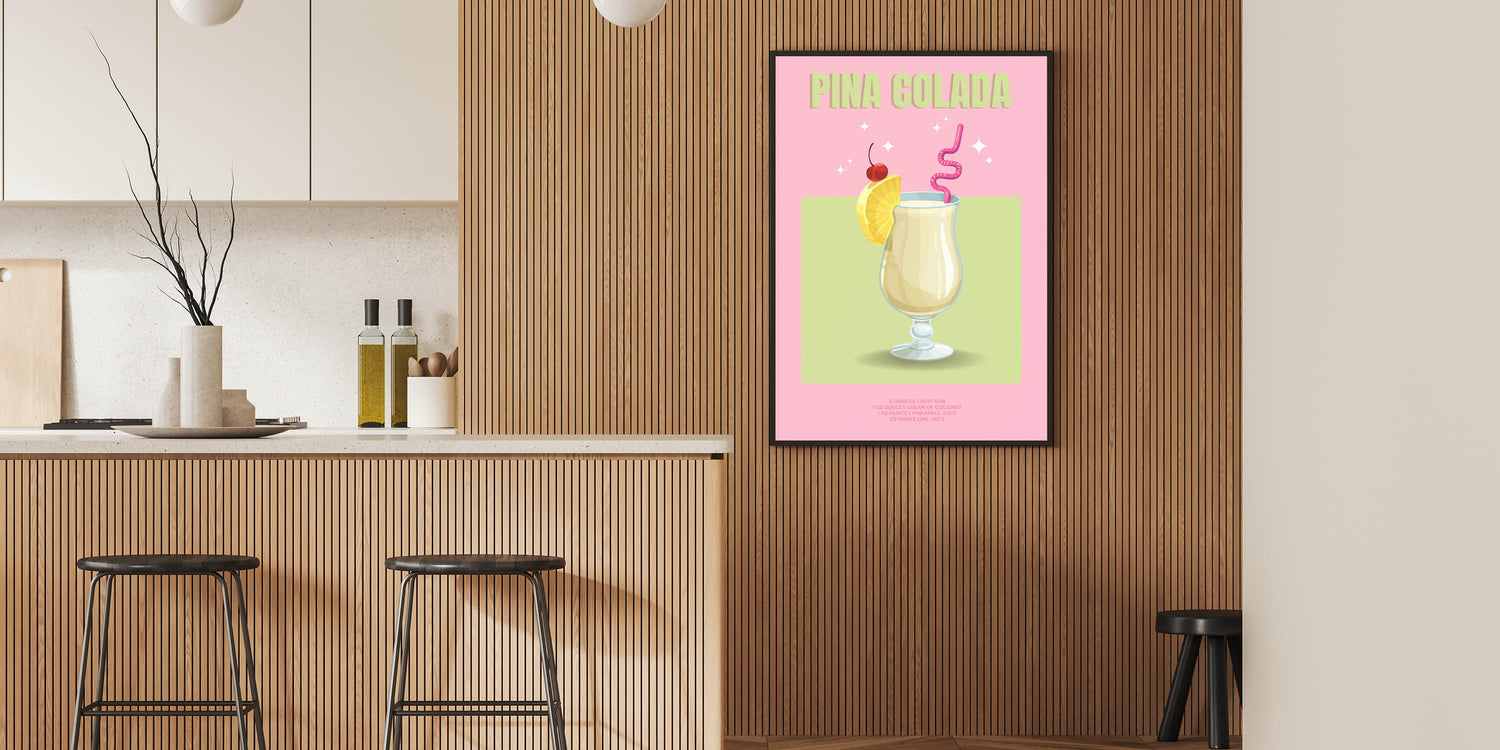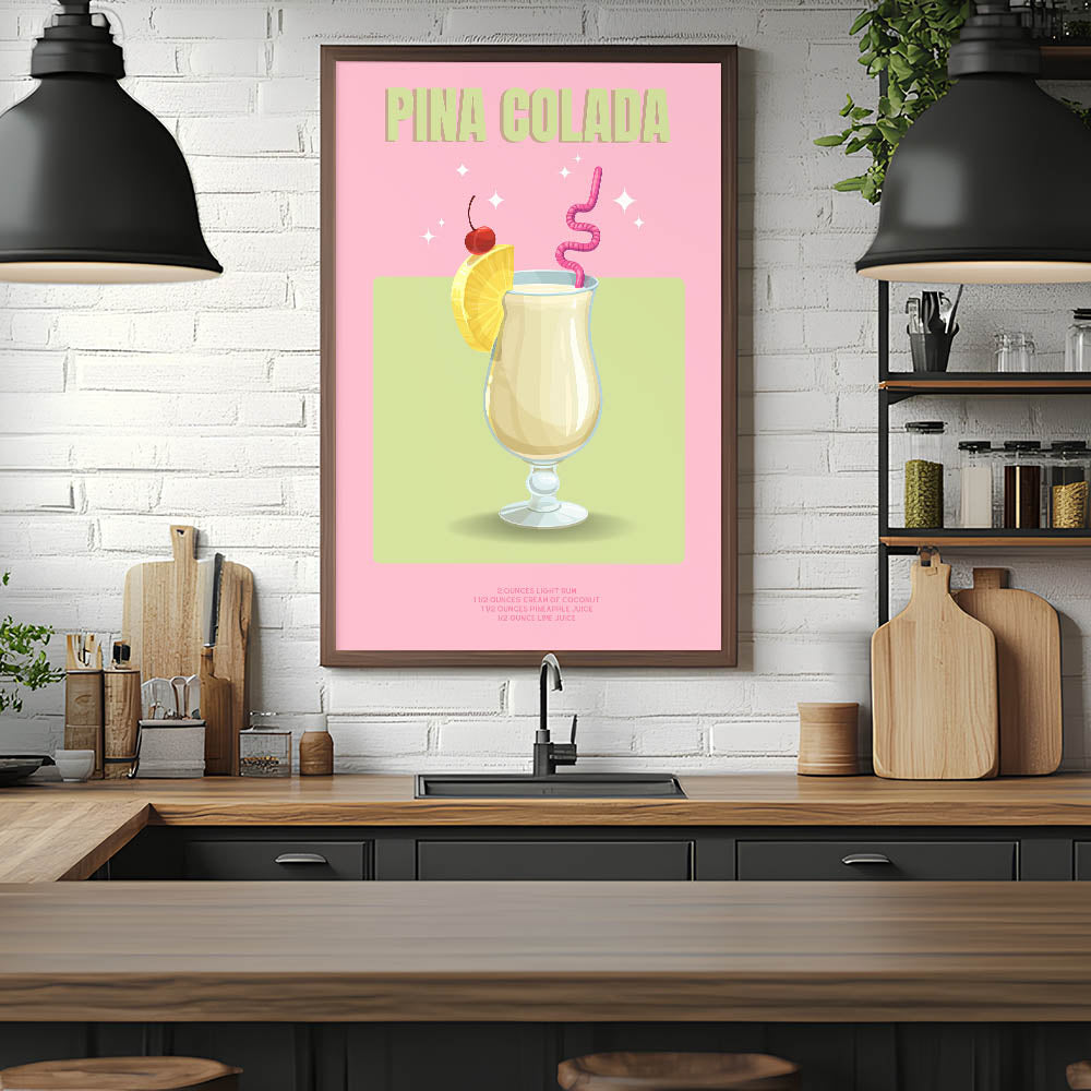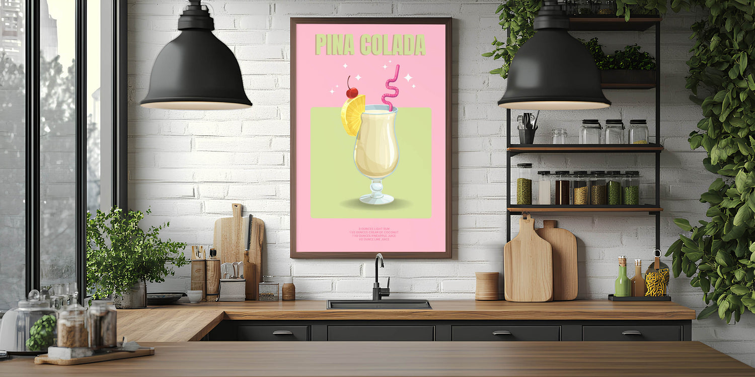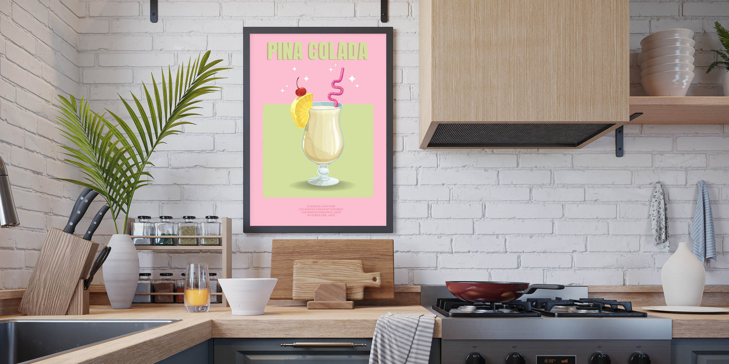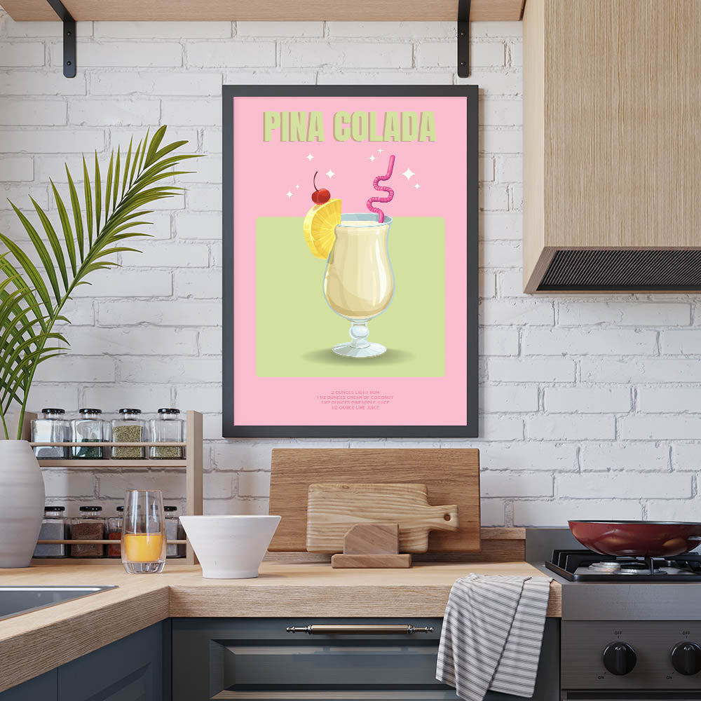 Add a tropical flair to your space with this Pina Colada Cocktail Art, a vibrant beverage wall art piece that blends style and elegance. Perfect for kitchens, bars, and lounges, this artwork captures the refreshing essence of a classic cocktail, making it a must-have for drink lovers.