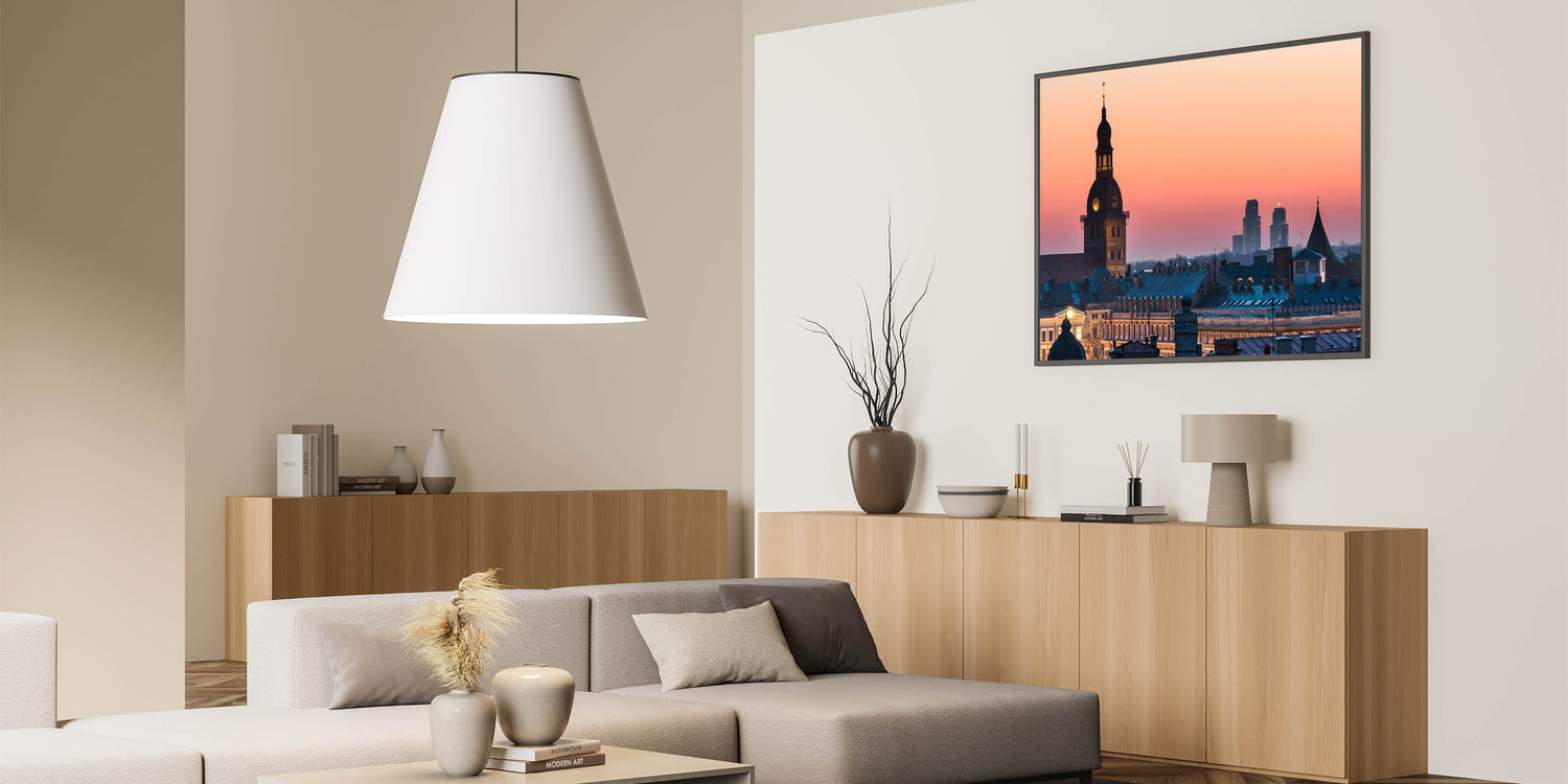 This decorative wall art from Latvia captures the blend of historical and modern architecture that defines Riga. Perfect for living rooms, offices, or any space that needs a touch of Latvian landscape art, this piece adds warmth and cultural richness to your decor.