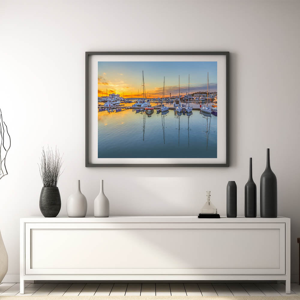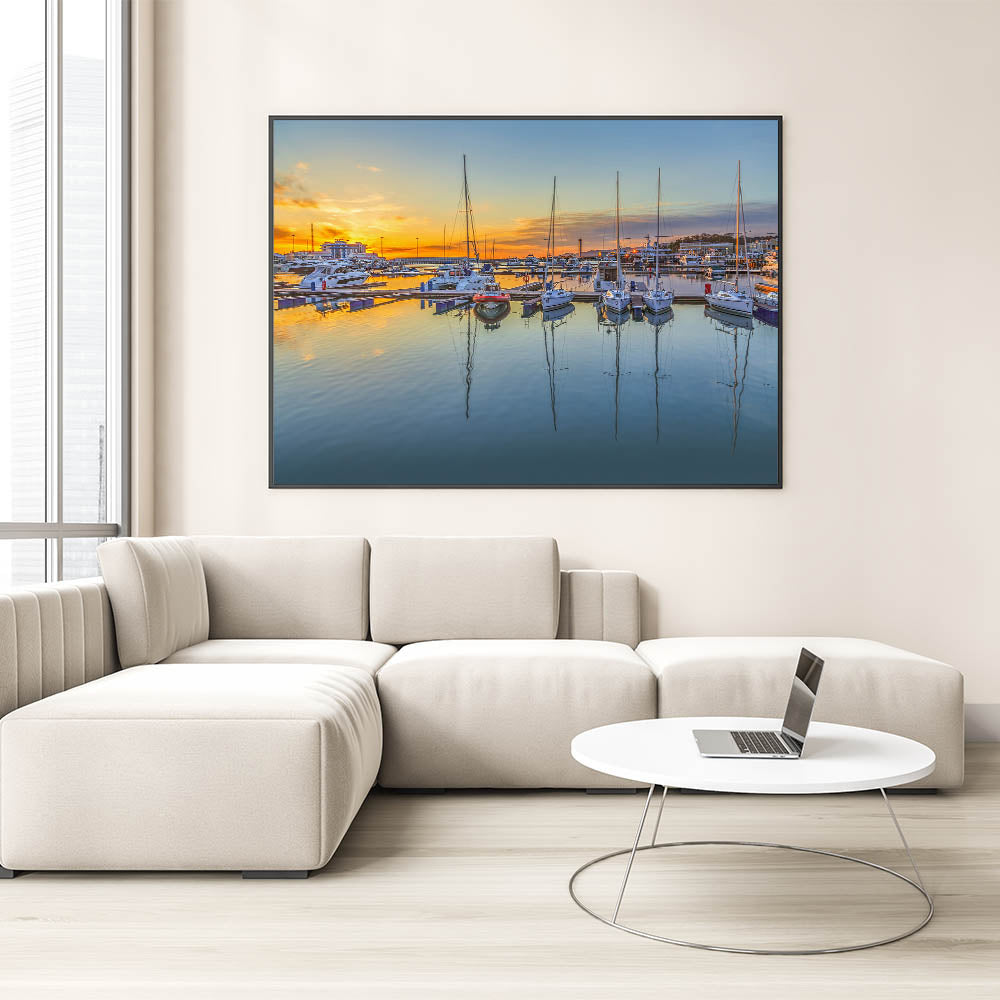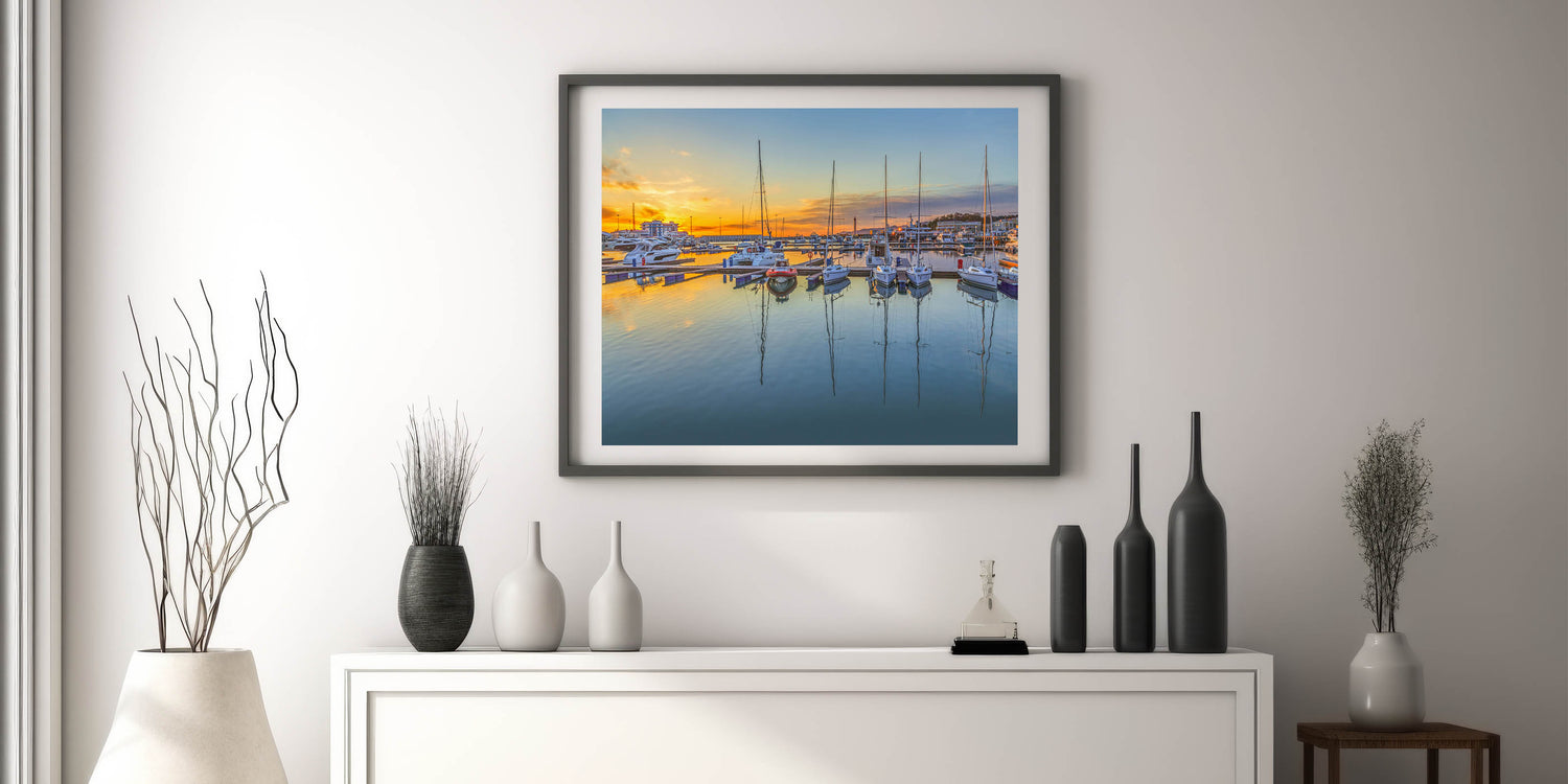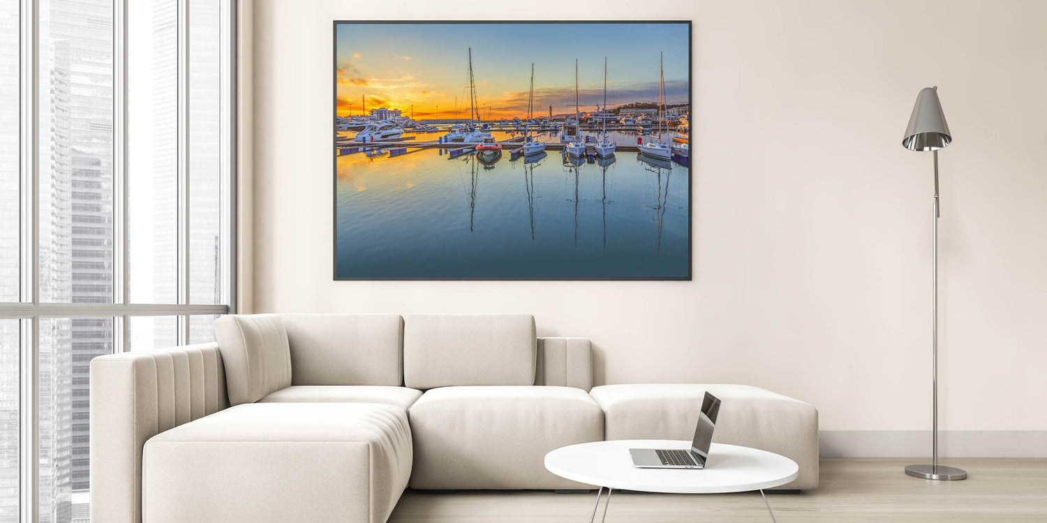Whether for your living room, bedroom, or workspace, this beautiful sunset scene will transport you to the tranquil shores of Sochi’s marina.