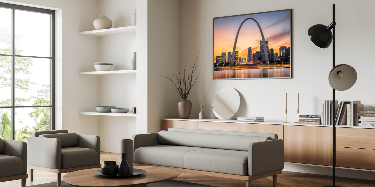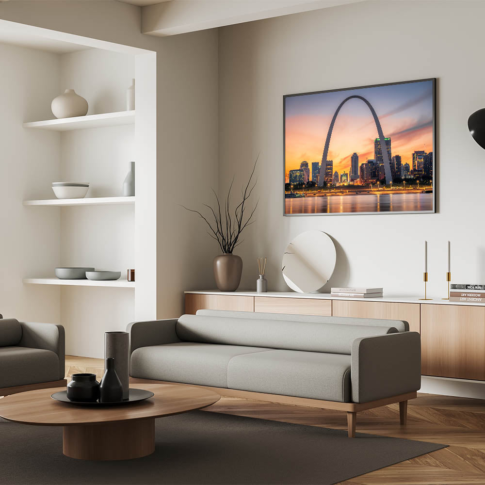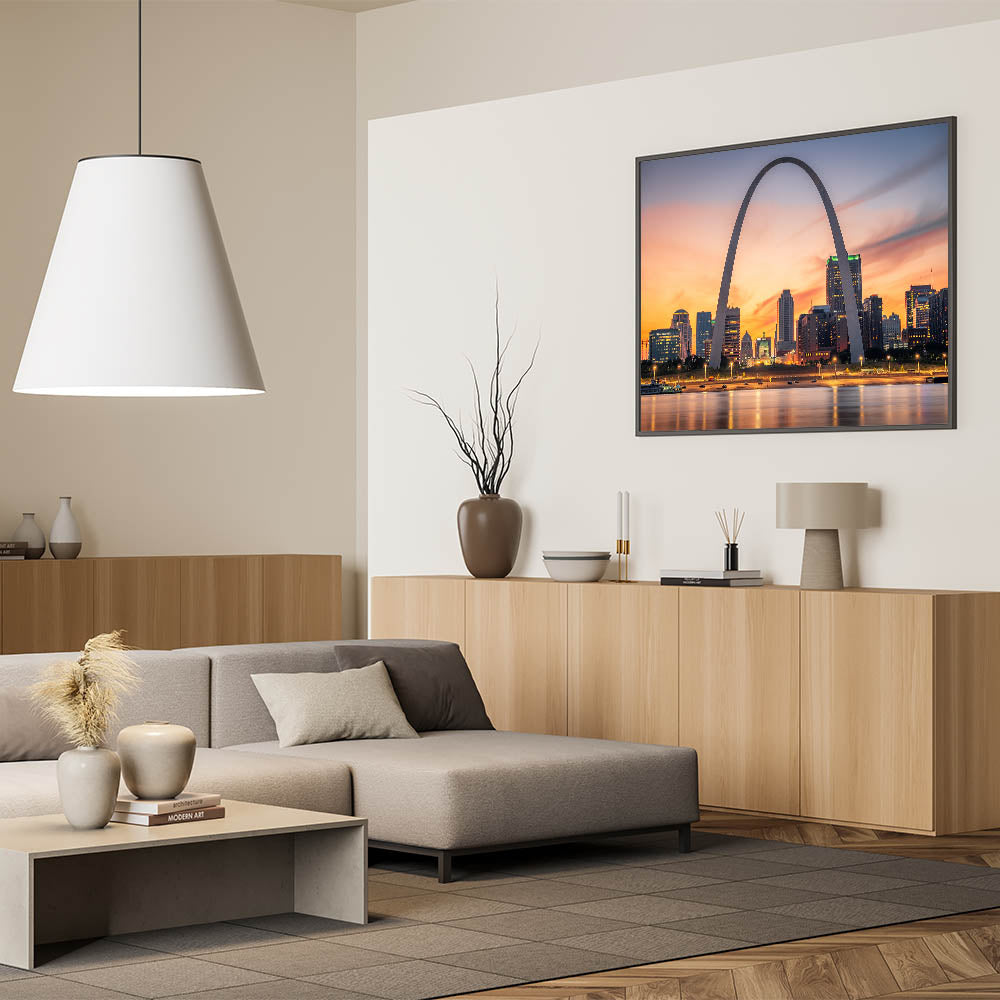 - Easy Installation: Ready to hang, making it simple to infuse your home or office with the serene beauty of a St. Louis sunset.