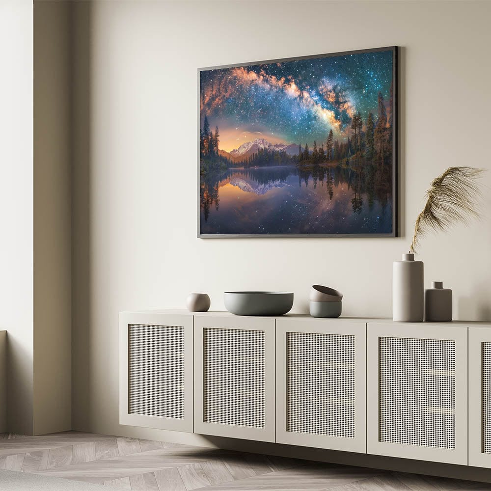 - High-quality space canvas print with stunning nebula imagery