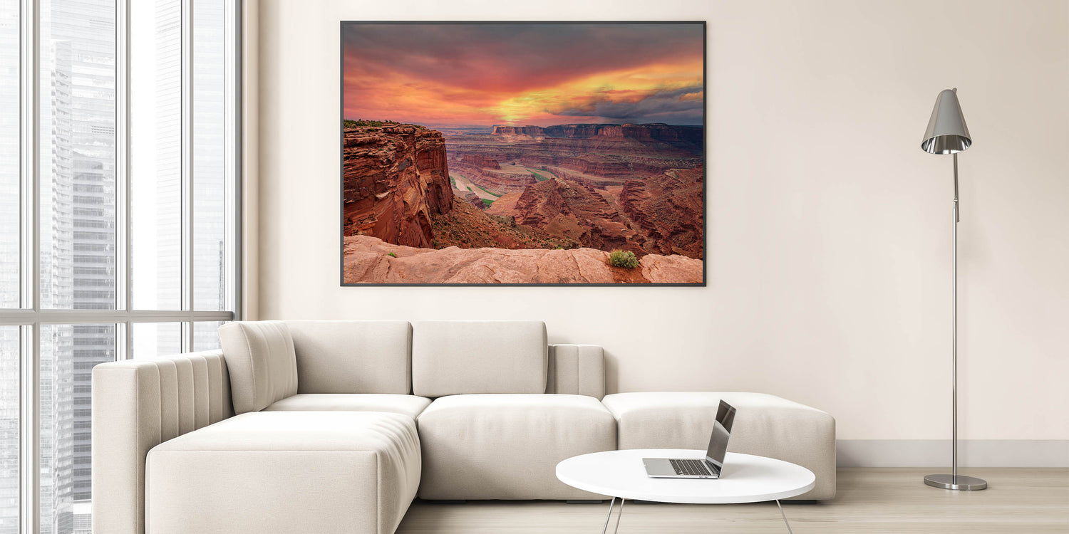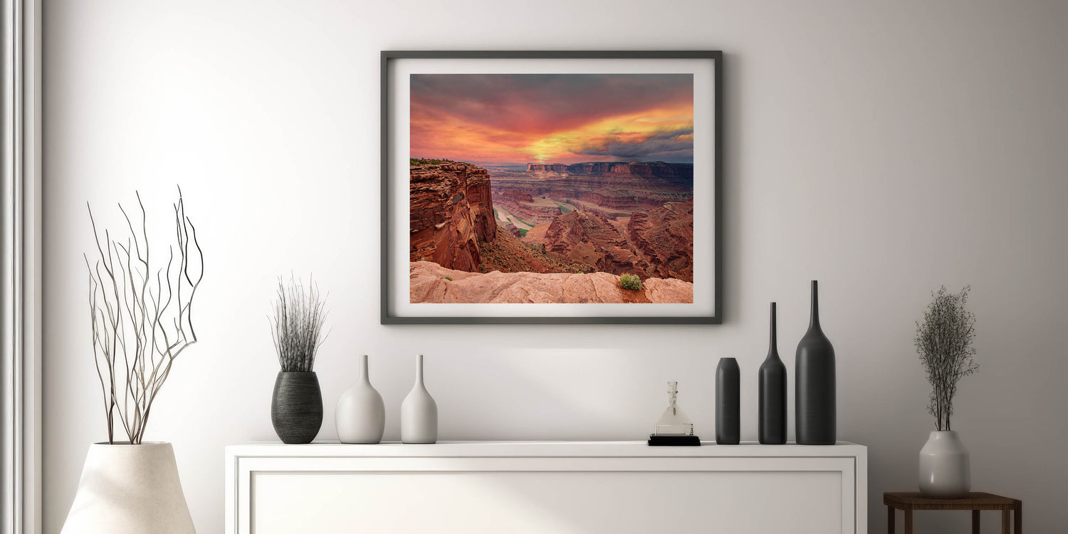 Bring the majesty of the canyon into your home with this sunset wall art, perfect for creating a warm and inviting atmosphere. This piece is sure to inspire and impress, making it a cherished addition to your art collection.