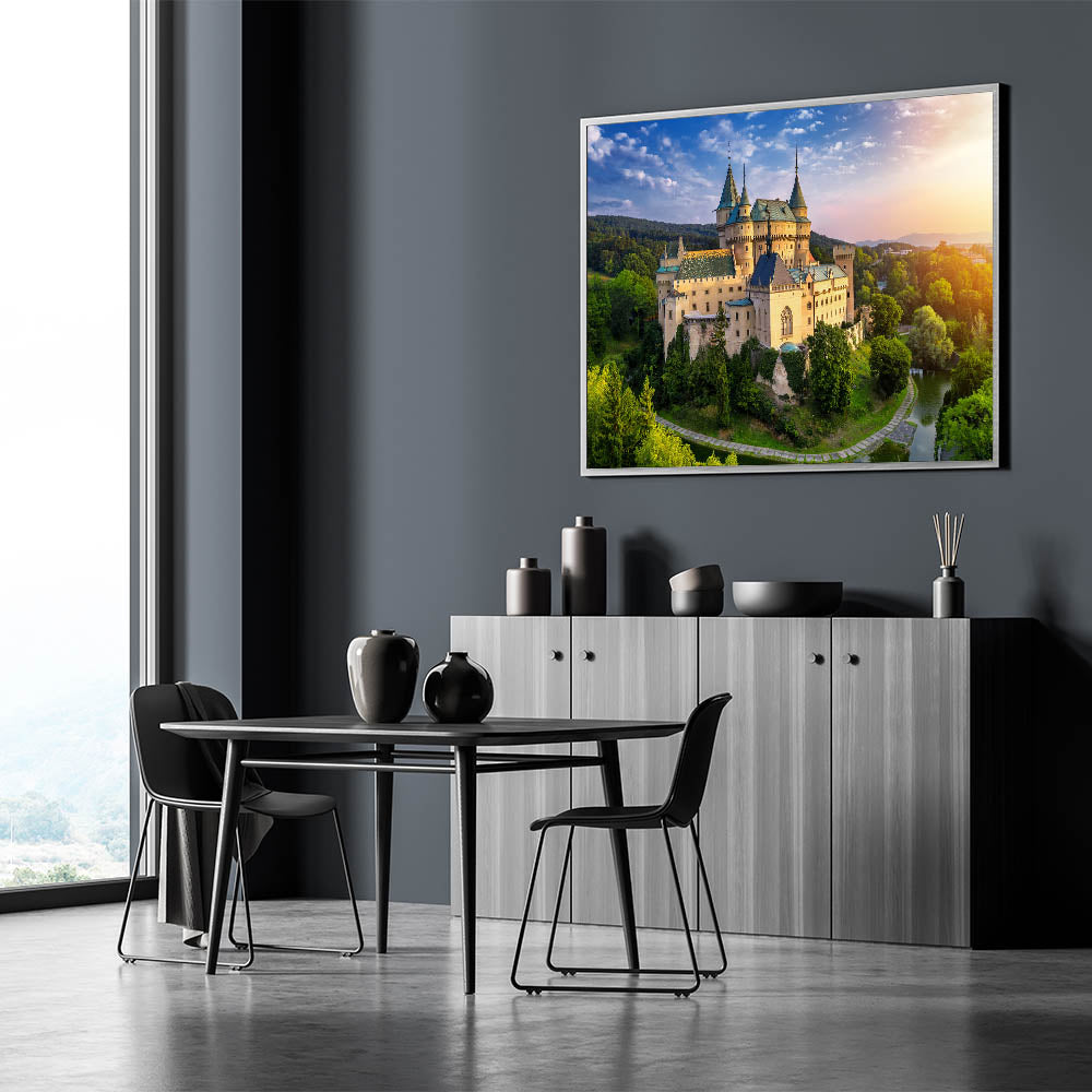 Bring the timeless charm of European castles into your home with this captivating piece of wall art. Whether you’re a lover of history, architecture, or simply beautiful landscapes, this artwork will add a touch of elegance and tranquility to any room.