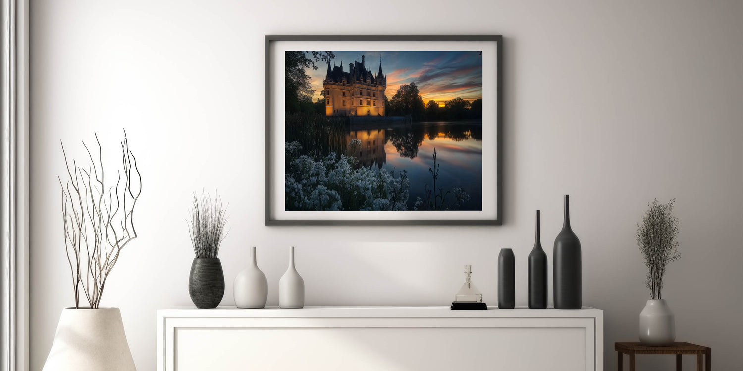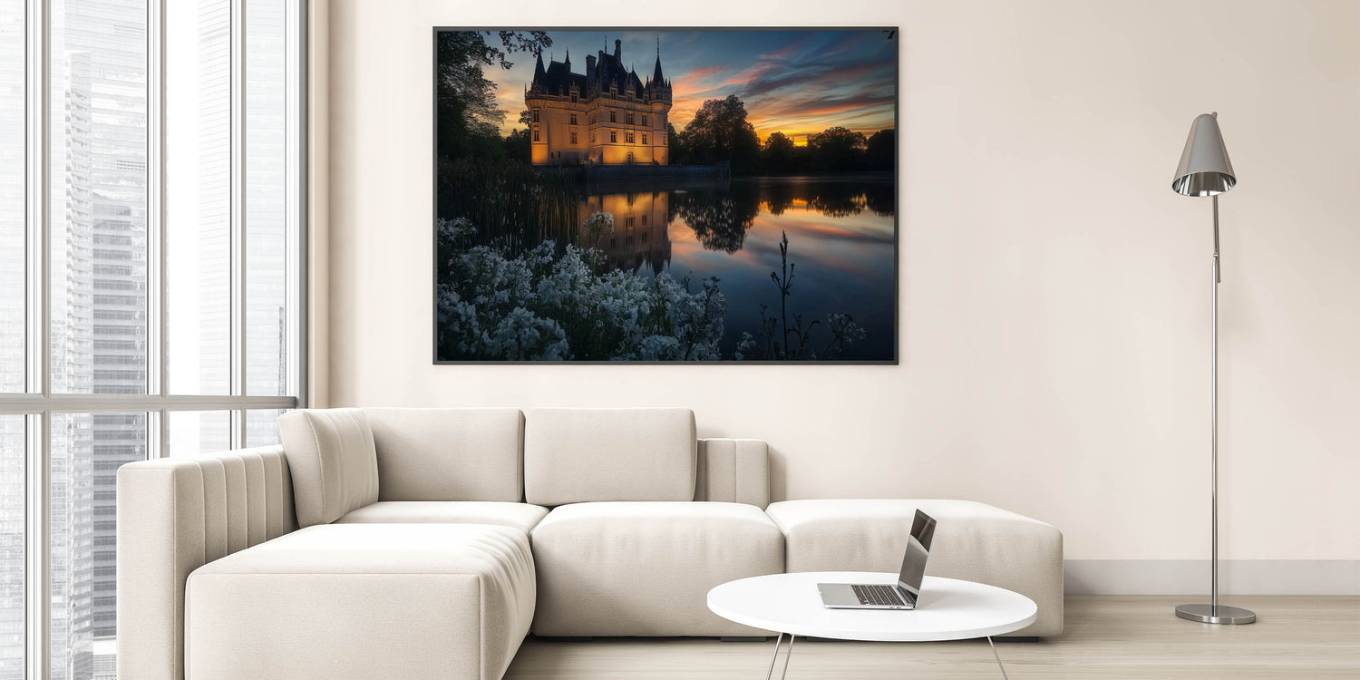 Sunset Castle Wall Art – Elegant Reflection in Golden Evening Prints