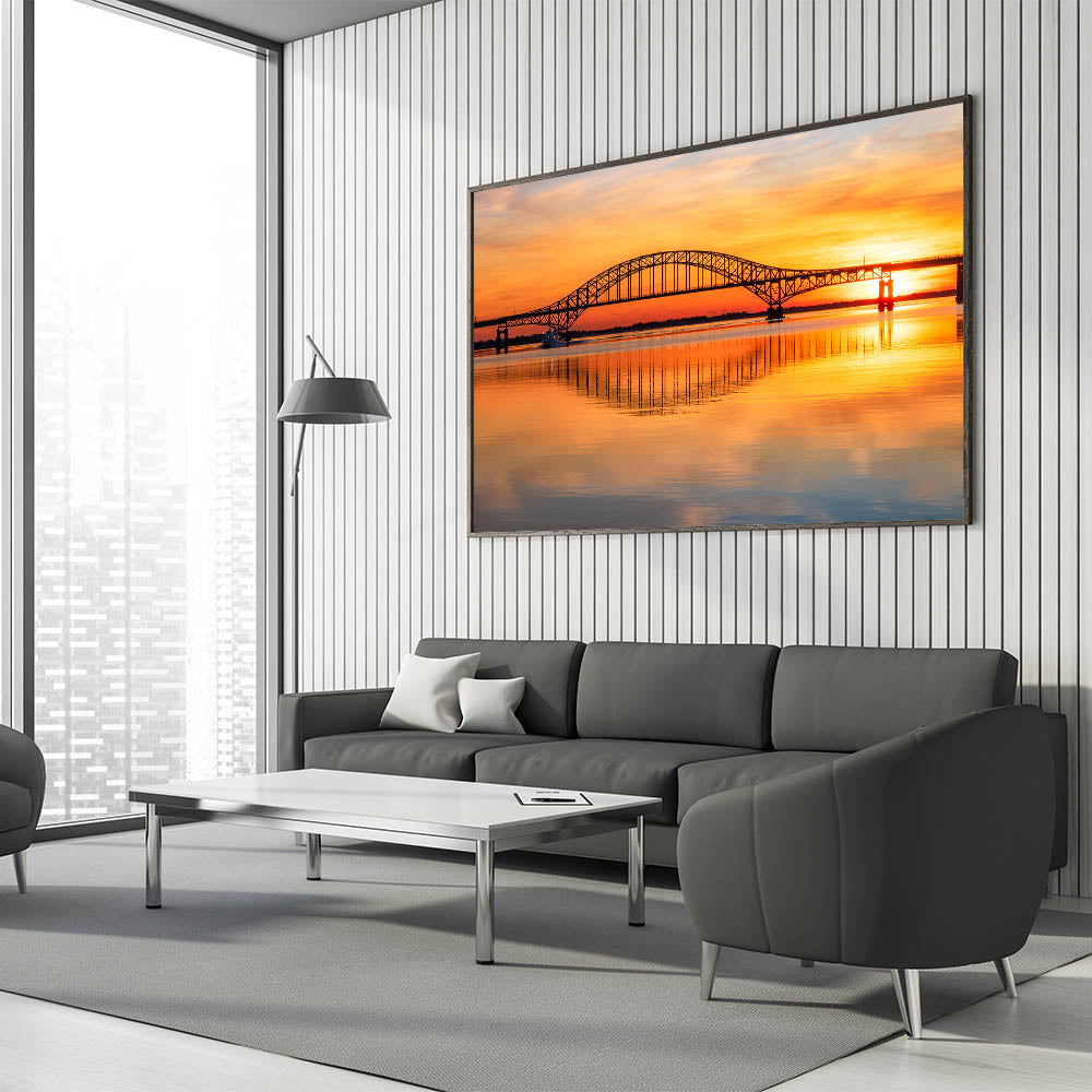 - Rich colors and sharp details bring the sunset’s glow and the bridge’s silhouette to life on your walls.