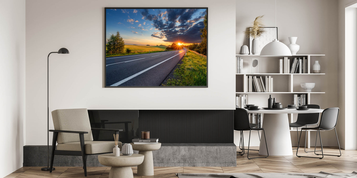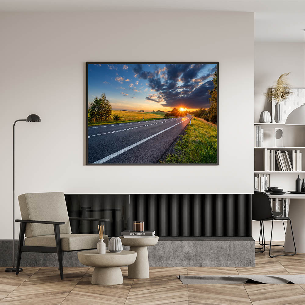 Sunset Road Trip Photography - Scenic Country Highway Wall Art Decor