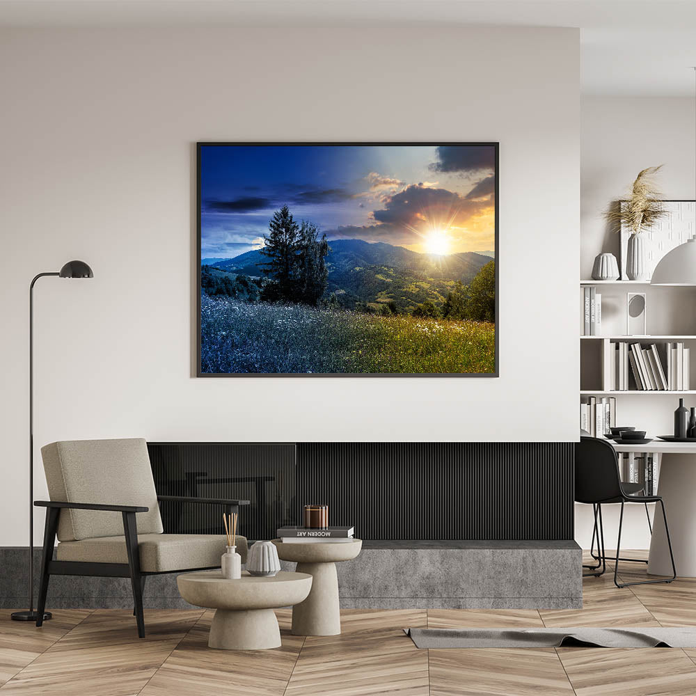 Ukraine Framed Art – Mountain Landscape with Sunset and Moonrise Print