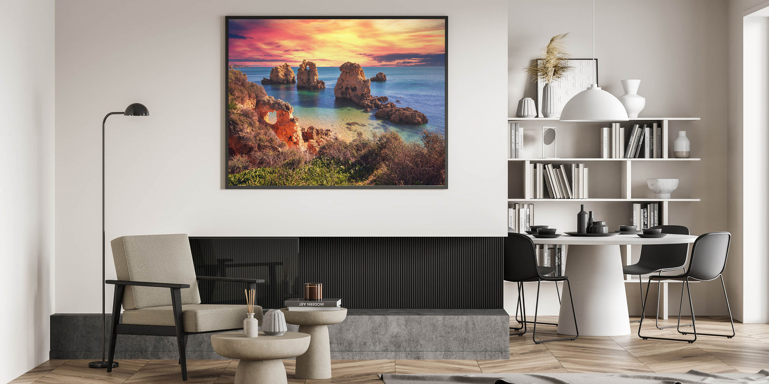 Whether you're looking to create a focal point in your living space or simply wish to bring the warmth of a sunset into your home, this marine-inspired canvas print is the ideal choice. Let this sunset coastal scene fill your space with the beauty and tranquility of nature.
