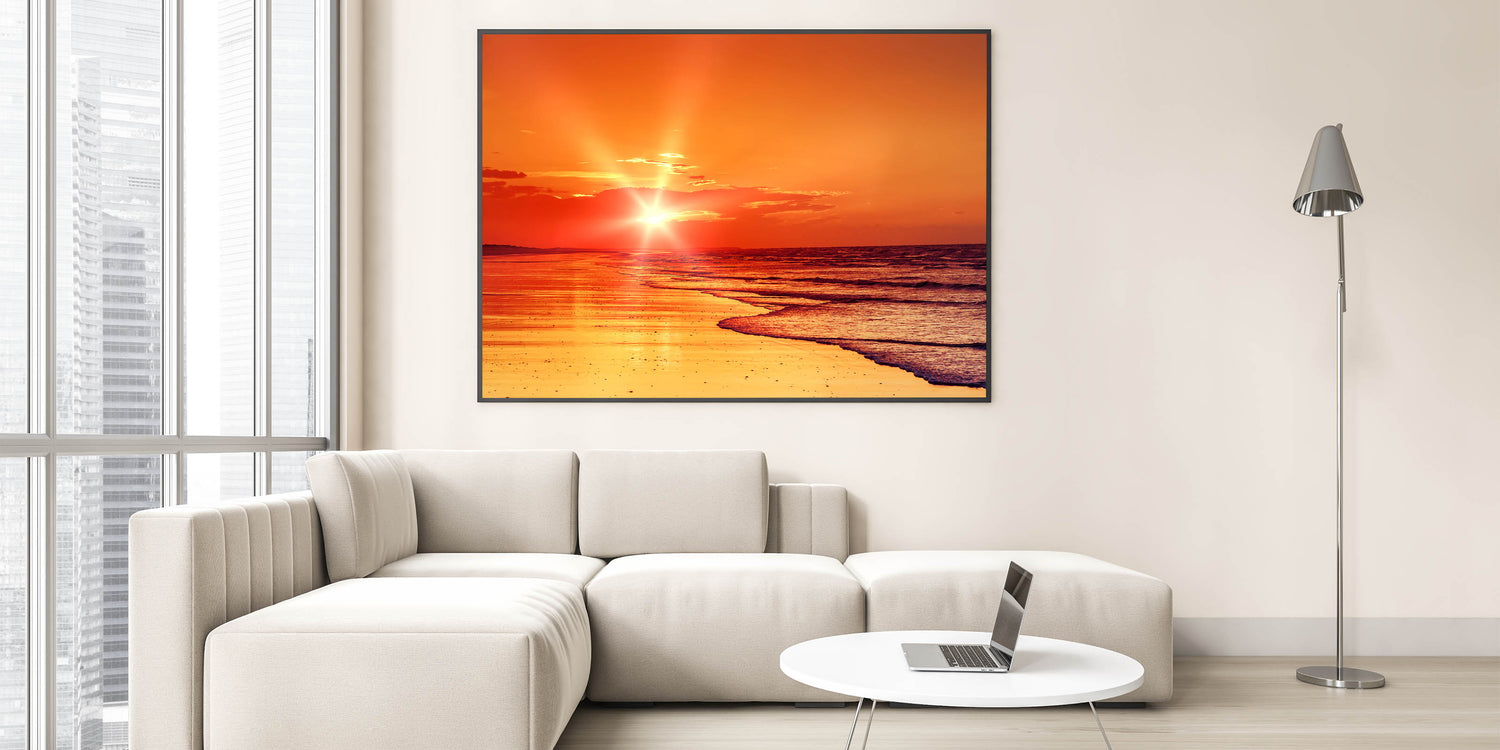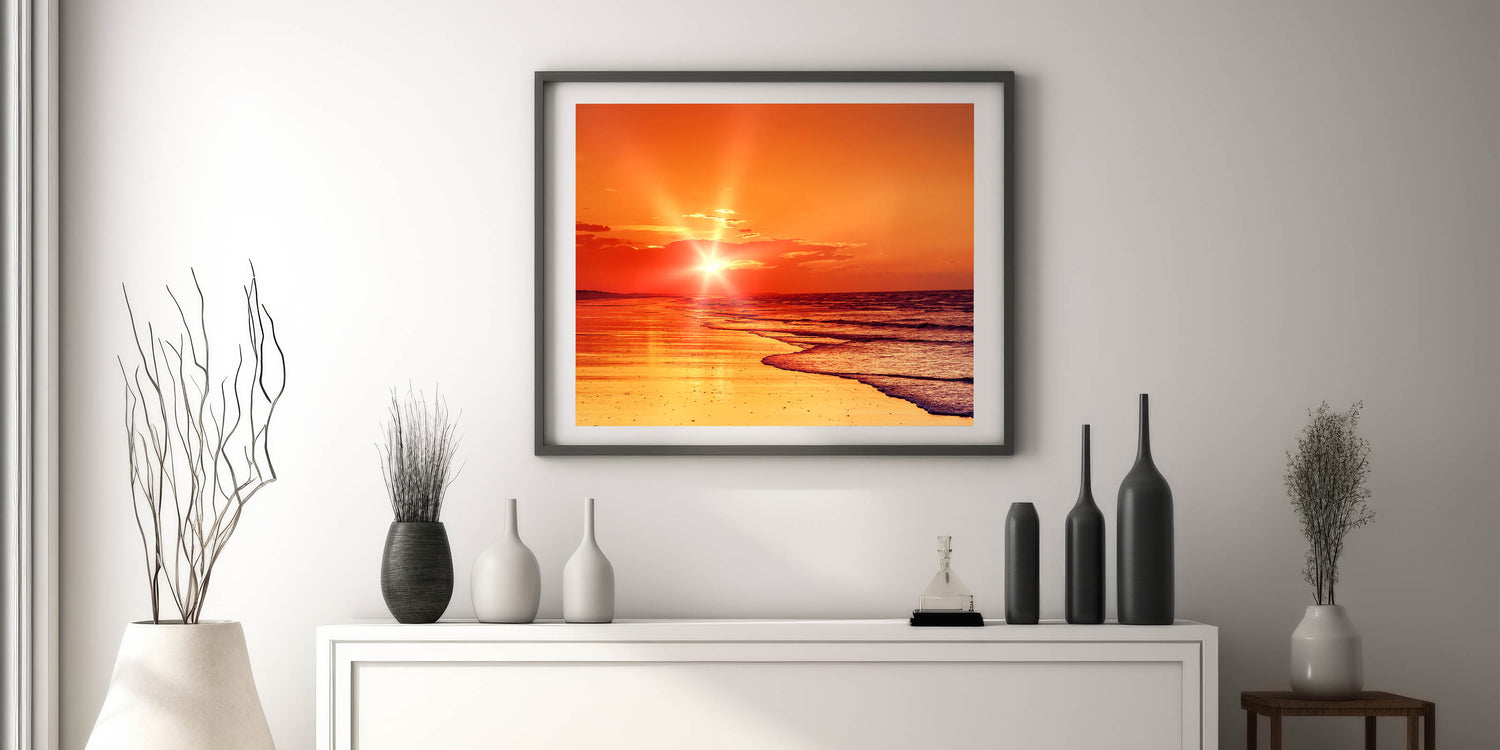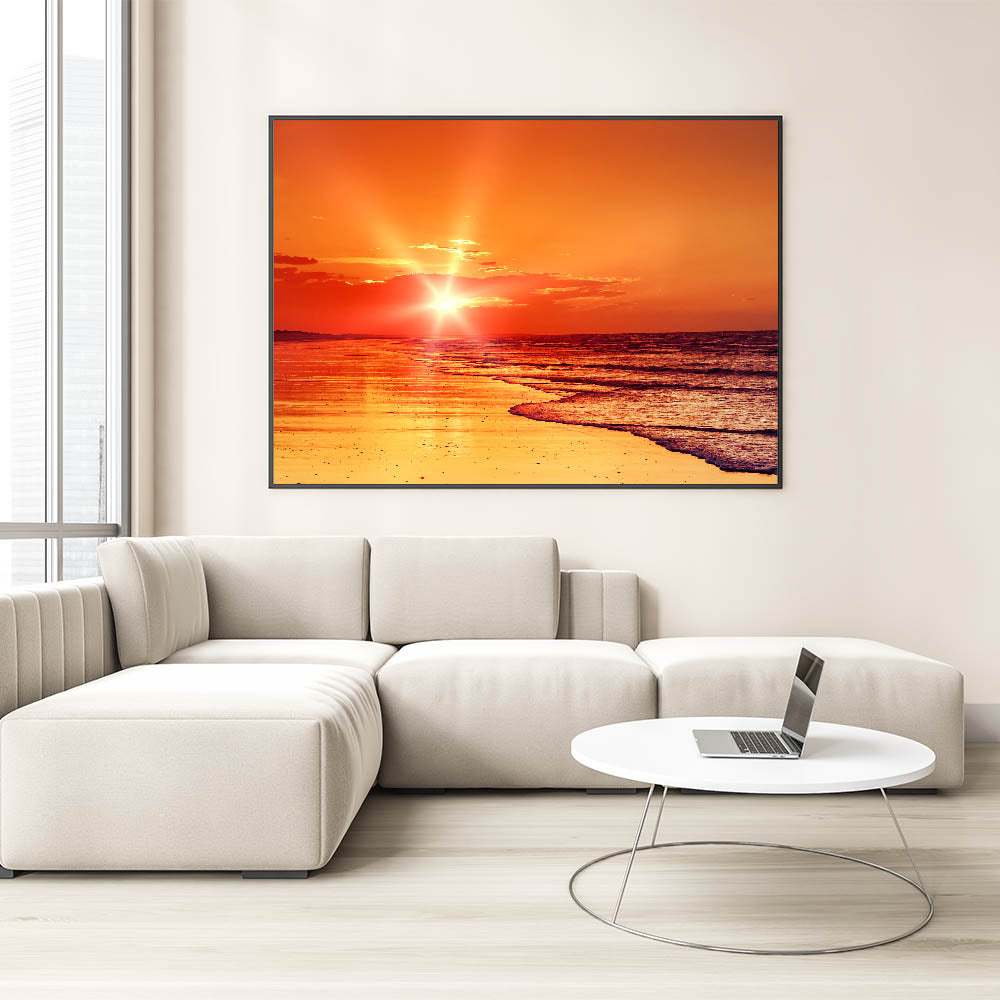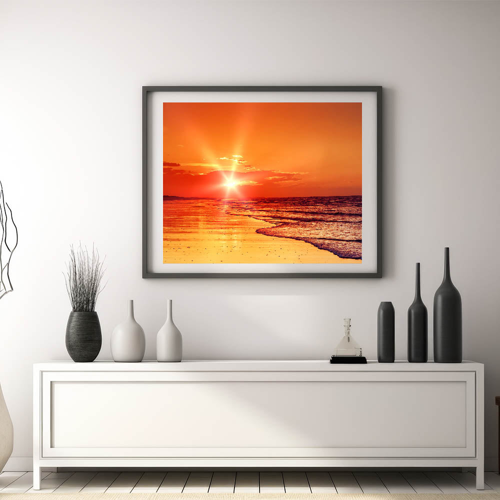 • High-definition print showcasing the rich and vibrant colors of a sunset beach scene.