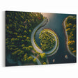 This stunning Swedish Landscape Art offers a mesmerizing aerial view of a winding road through a lush forest surrounded by calm waters. The rich greens of the forest, combined with the natural curves of the road and the deep blues of the water, create a harmonious balance that brings the beauty of Nordic nature into your home.