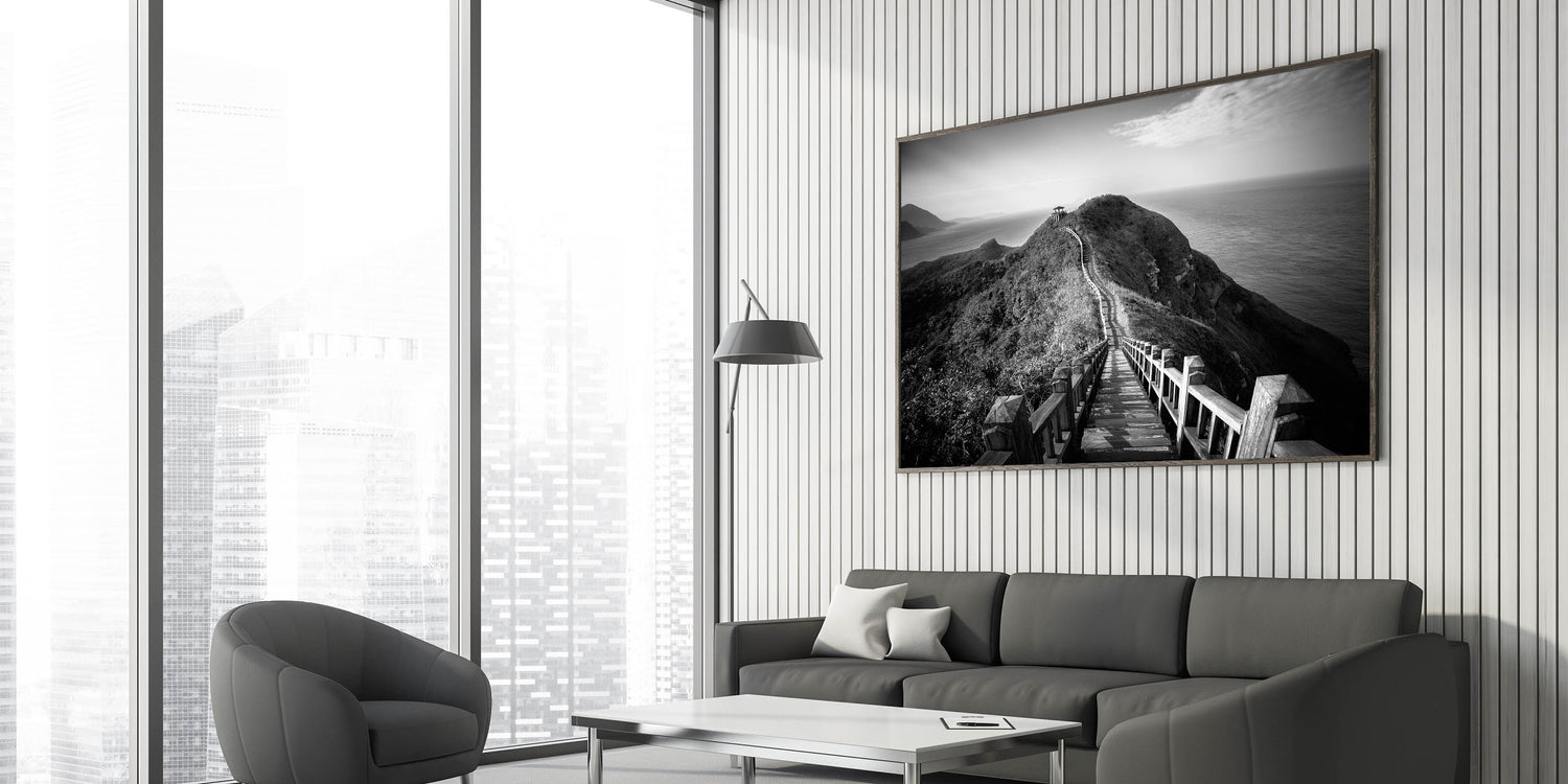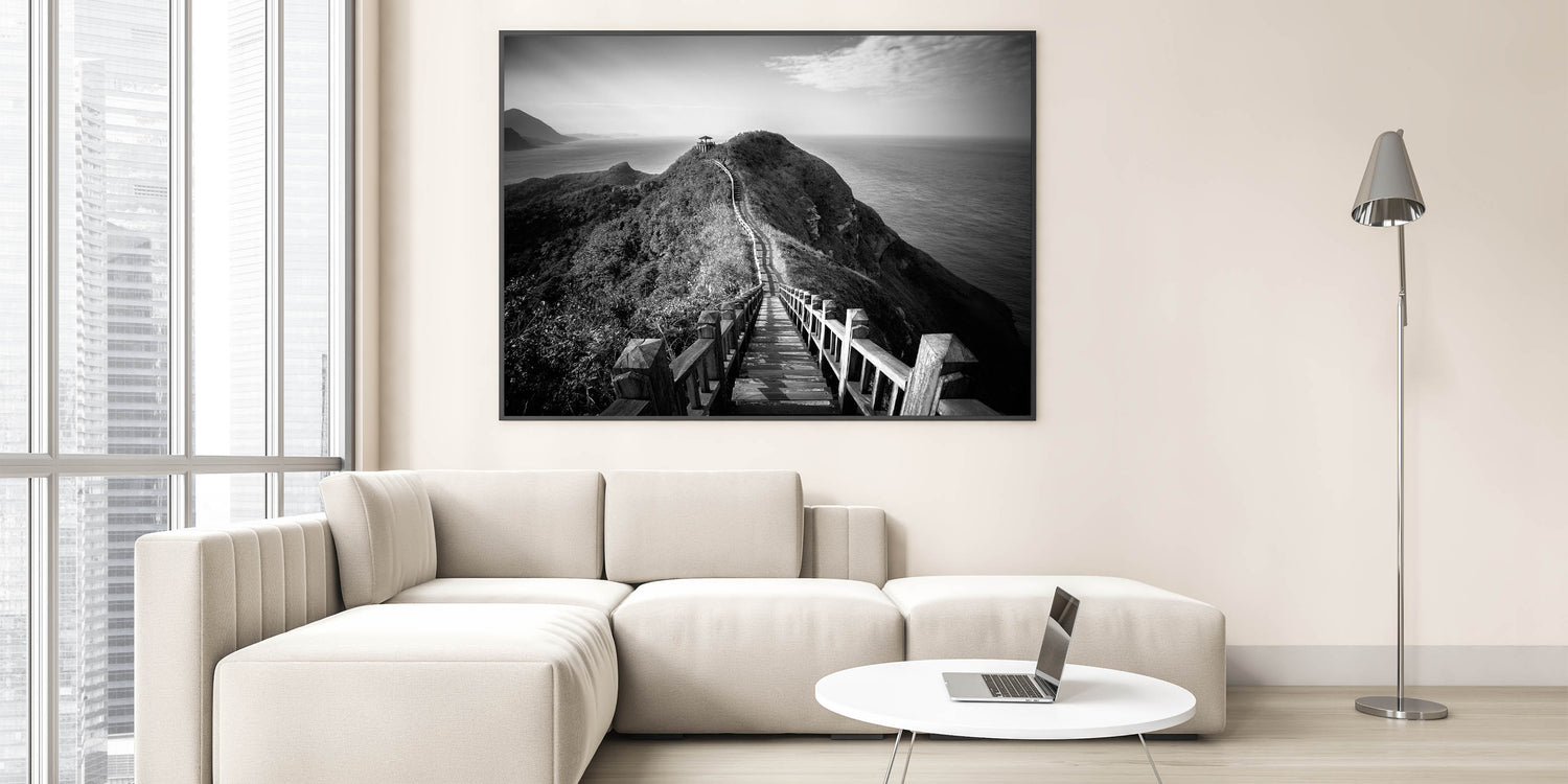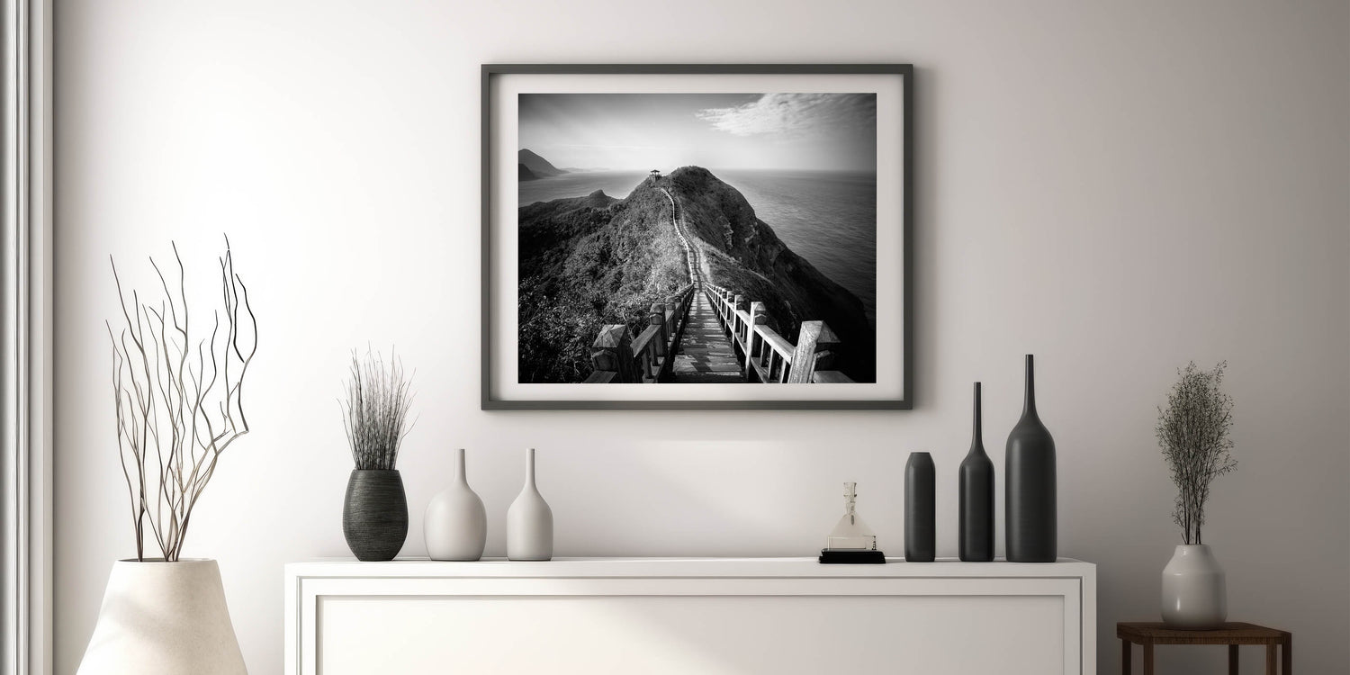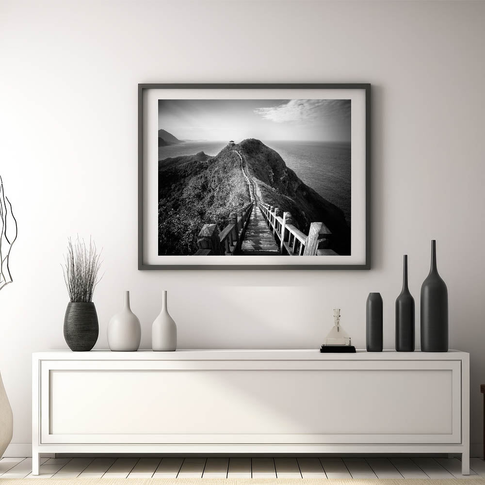 Monochrome Coastal Pathway - Taiwan Scenic Walkway Wall Art Print