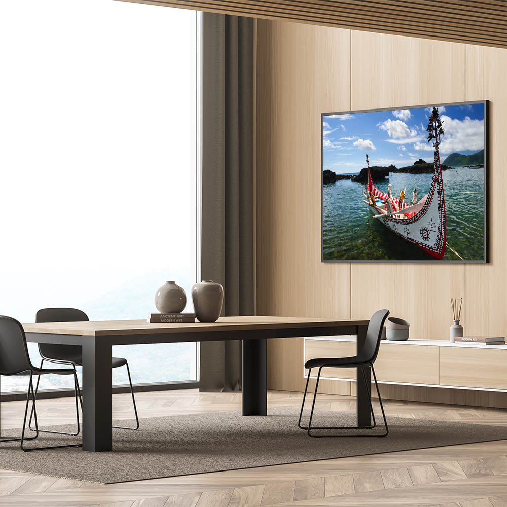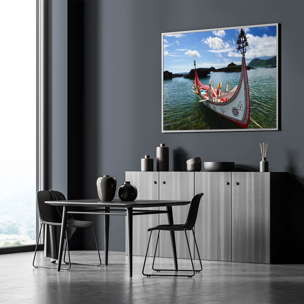 Discover the beauty of Taiwan's cultural heritage with this stunning wall art featuring a traditional Taiwanese boat against a serene coastline. Perfect for lovers of Taiwanese landscapes and those who appreciate beautiful Taiwan scenery, this artwork captures the essence of Asia region wall art. The striking boat, adorned with intricate designs, floats on crystal-clear waters, making this piece a wonderful addition to any space that celebrates Taiwan travel-inspired art.