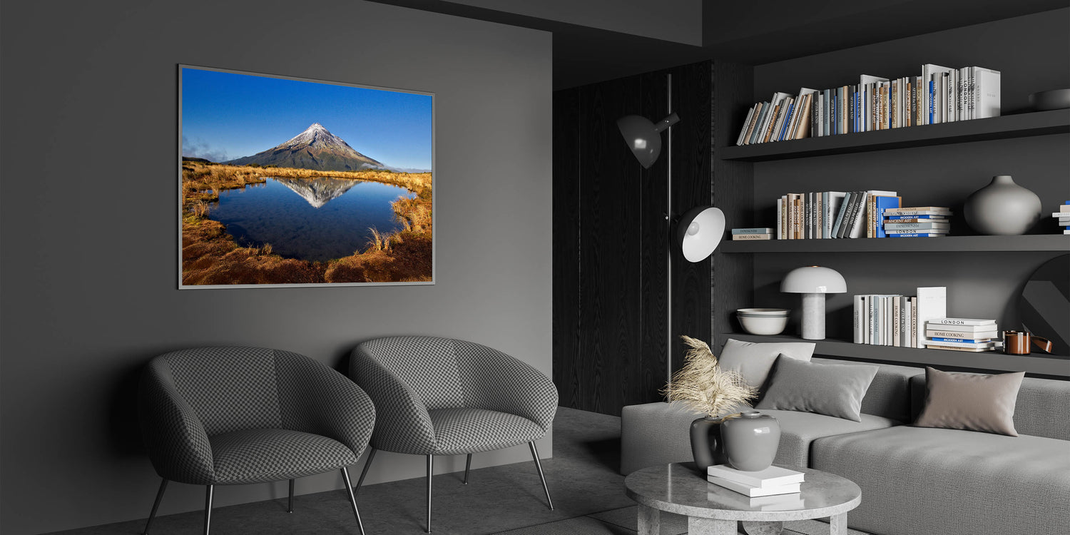 Taranaki Landscape Prints – New Zealand Scenery Art with Mountain Reflection