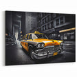 Capture the gritty allure of New York City with this dramatic yellow taxi wall art. This artwork showcases a classic taxi cab navigating the dark and moody streets of the city, creating a captivating contrast between the vibrant yellow and the monochrome urban backdrop. Perfect for those who appreciate the raw energy of city life, this taxi-themed wall decor brings a bold statement to any room.