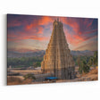 Immerse yourself in the timeless beauty of ancient Indian architecture with this stunning wall art, showcasing a majestic temple at sunset. The soft pinks, oranges, and purples of the sky create a breathtaking backdrop that highlights the intricate details of the temple's architecture. This piece captures the serenity and grandeur of India's historical landmarks, making it a perfect addition to any home or office decor that seeks to incorporate cultural depth and elegance.