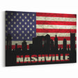 Patriotic Nashville Skyline Wall Art - Music City Flag Decor Canvas Print