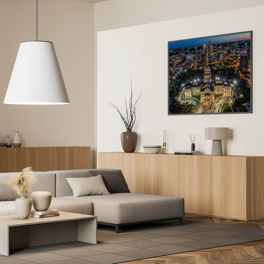 - Versatile Decor: Ideal for living rooms, offices, or any space that needs a touch of Austin’s nighttime magic.