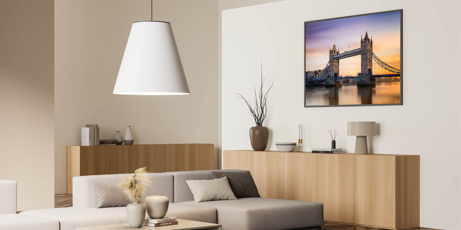 • Scenic River Thames artwork: Available in stretched canvas, framed canvas, and acrylic glass