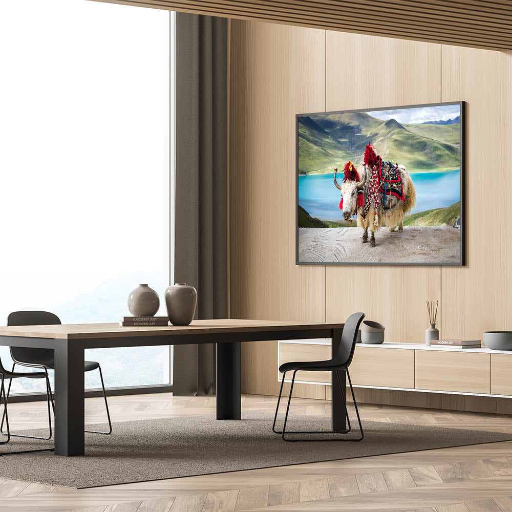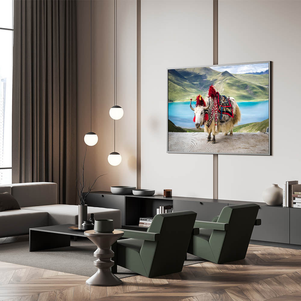 - Rich, Vivid Colors: High-resolution printing highlights the turquoise waters and intricate yak adornments.