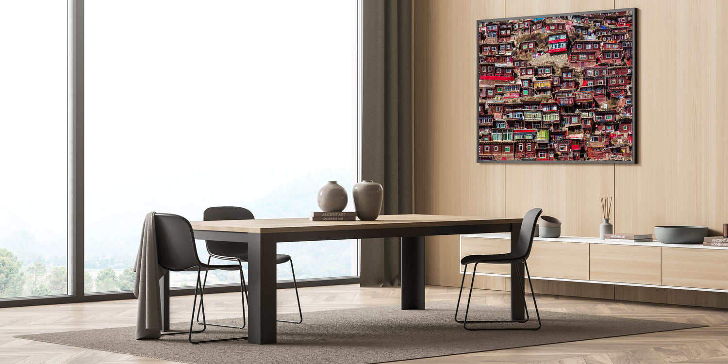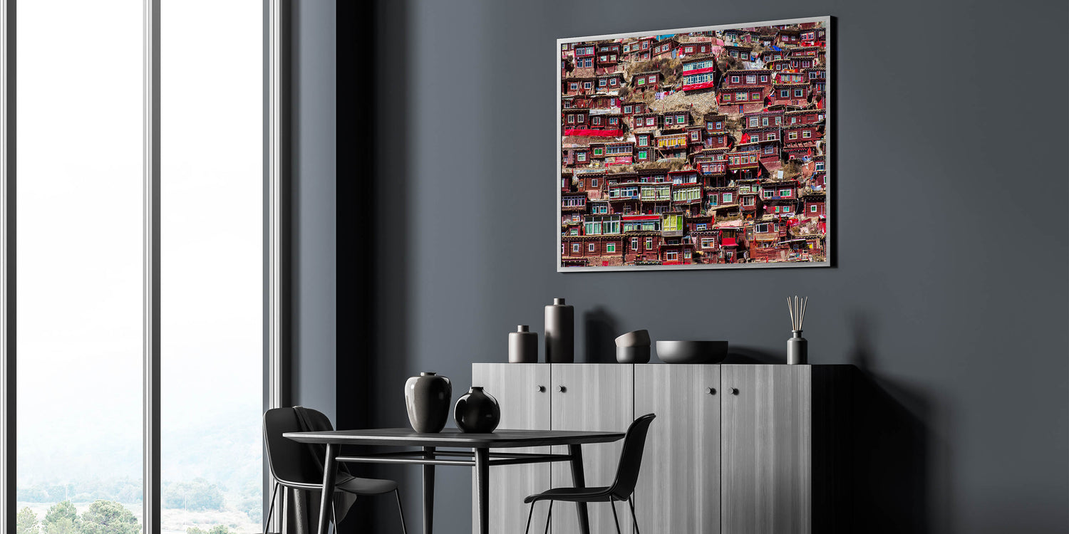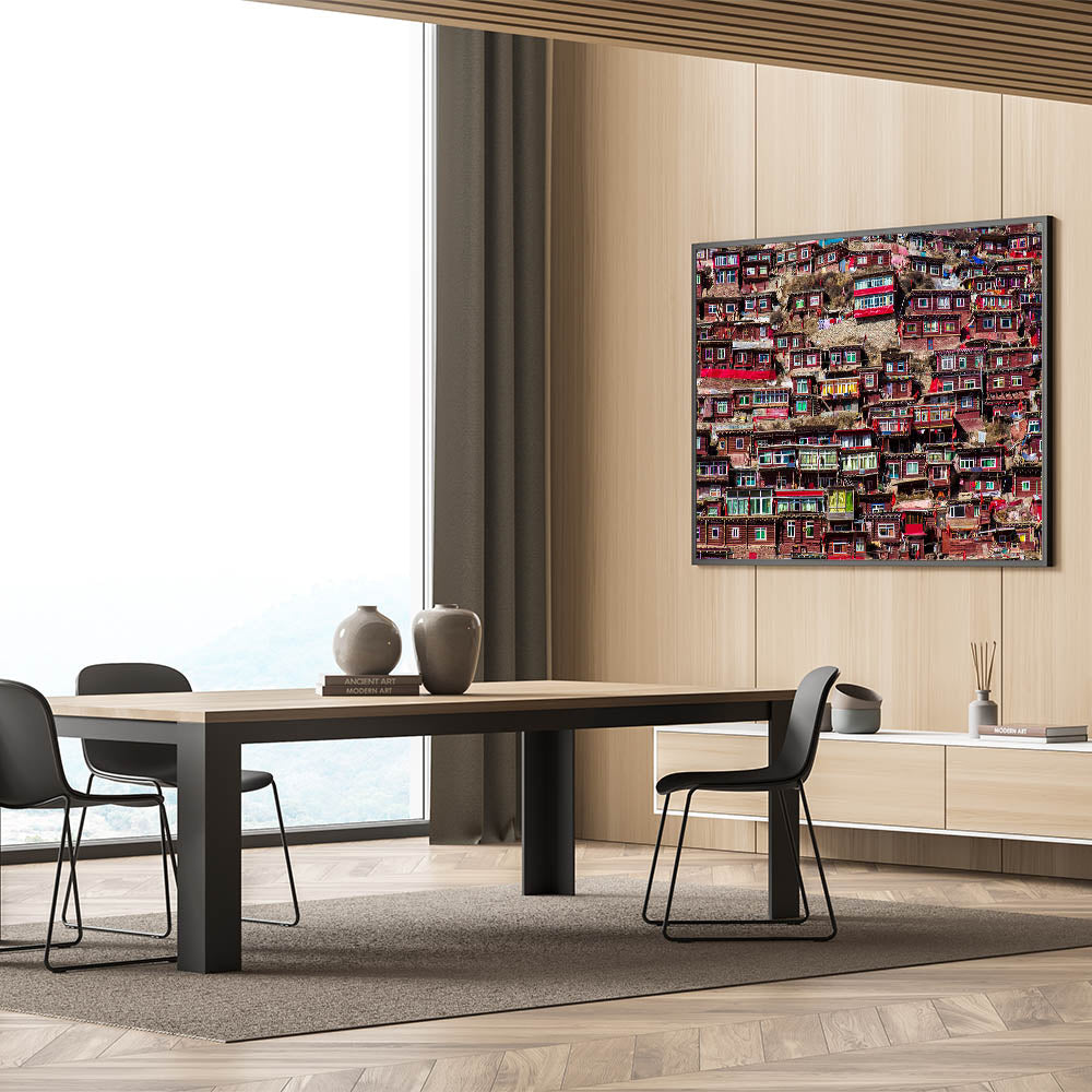 Embrace the vibrant charm of Tibetan village life with this stunning wall art, showcasing a colorful hillside settlement nestled in the heart of Tibet. Each house, adorned with distinct colors and traditional architectural details, creates a captivating mosaic that celebrates Tibetan culture and community. This artwork is perfect for those looking to add a lively, cultural touch to their decor, making it an ideal addition to any room.