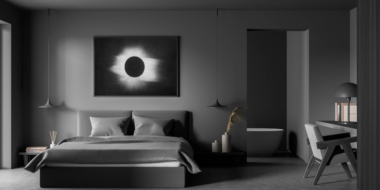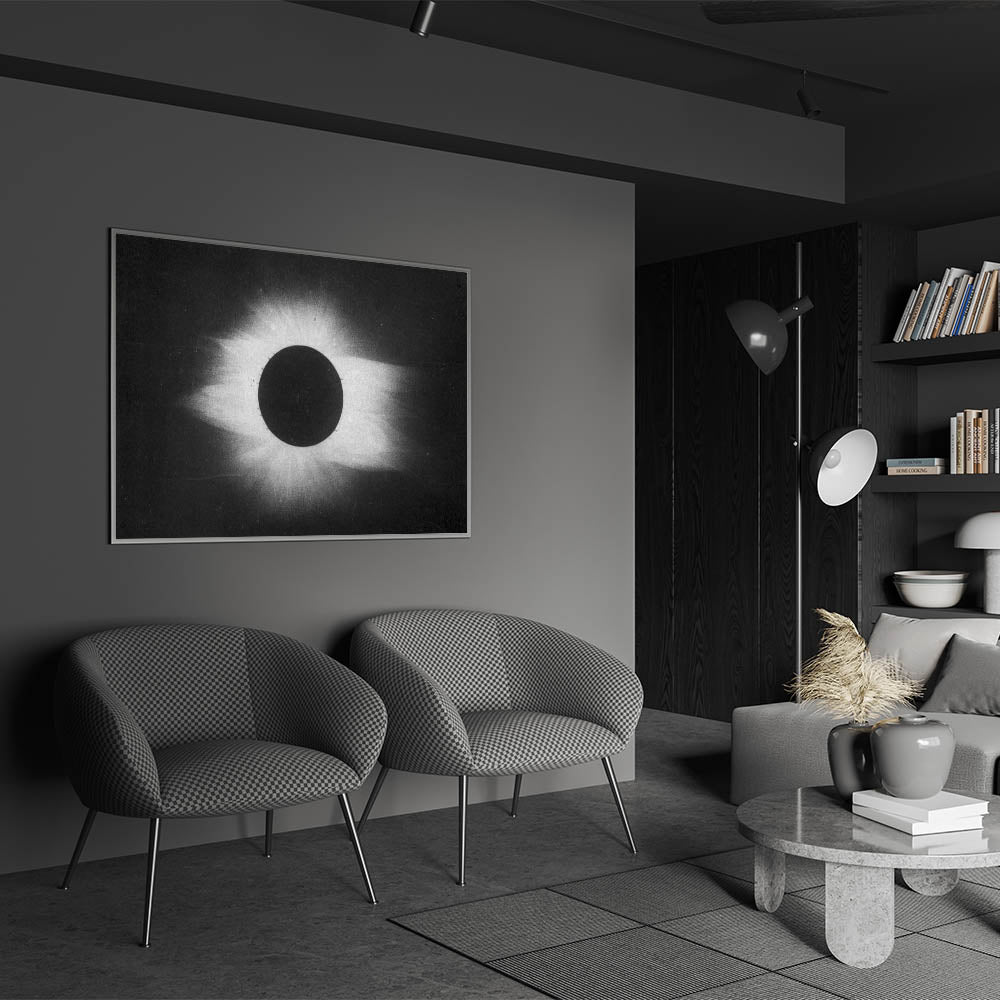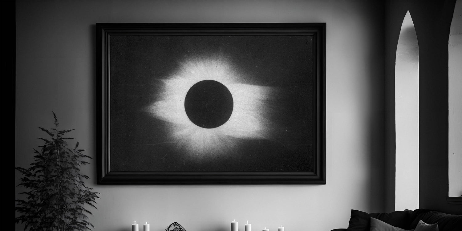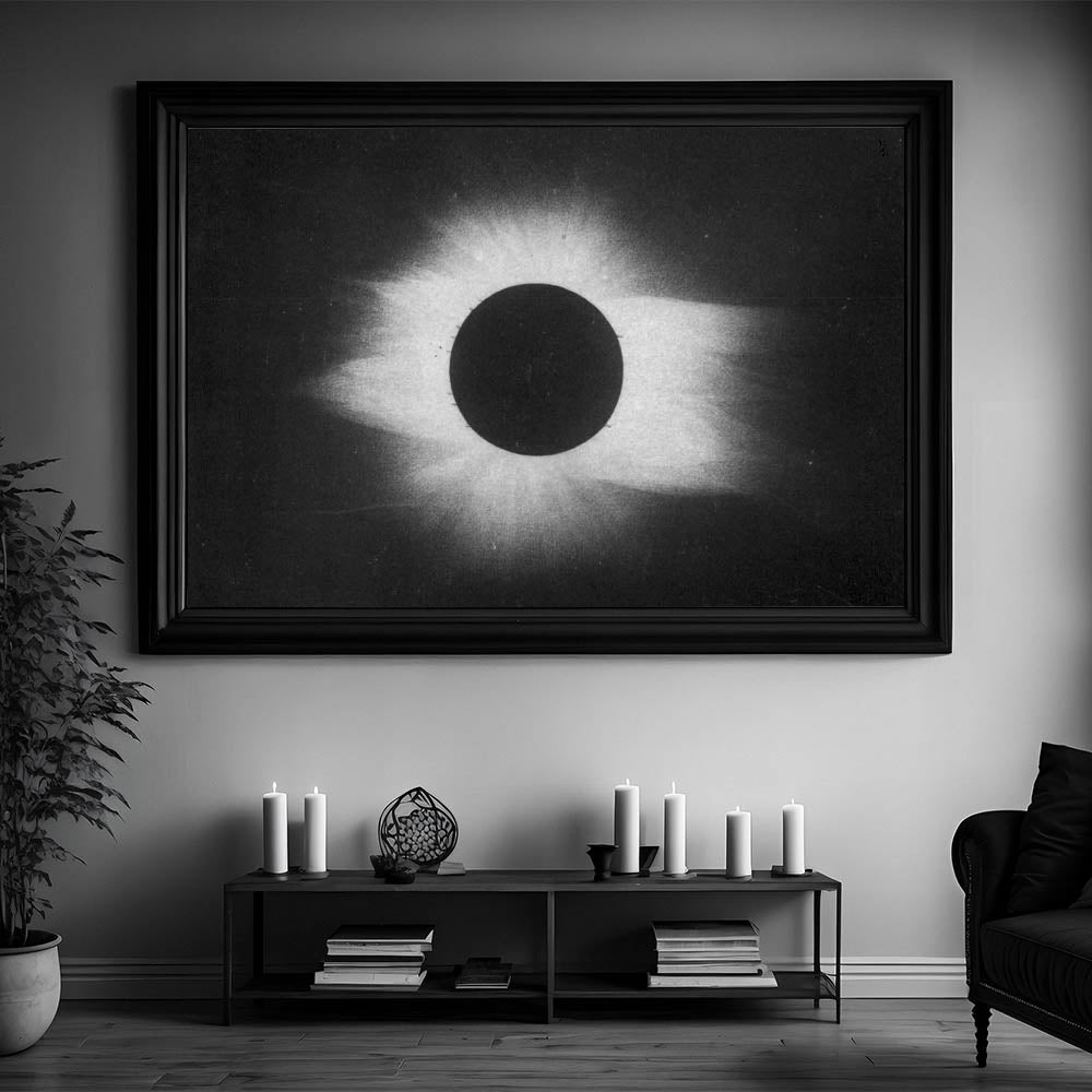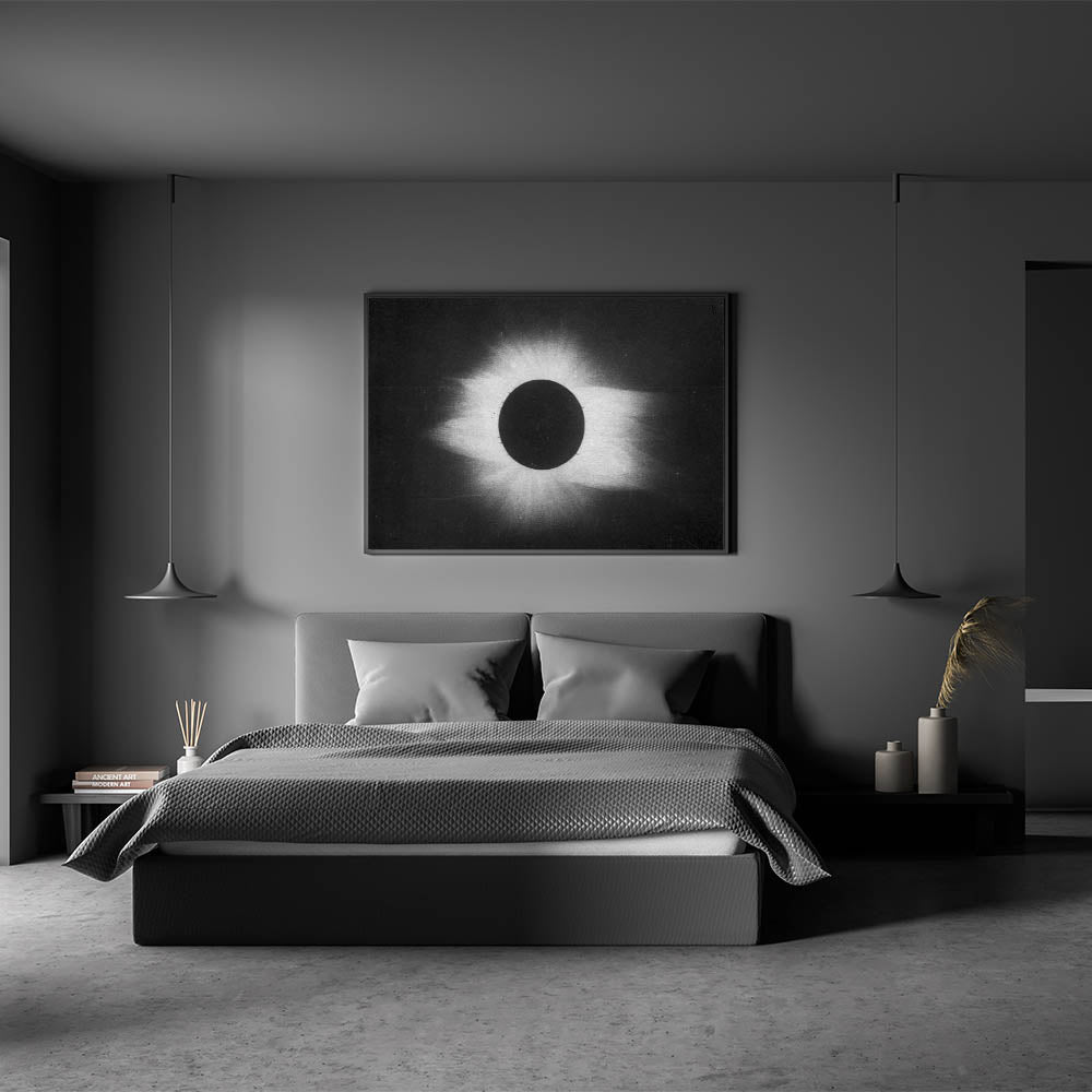 Whether displayed as a framed print or stretched canvas, this solar eclipse artwork will add an atmospheric touch to your decor, making it perfect for anyone seeking a unique, modern aesthetic. Embrace the darkness and beauty of this cosmic-inspired grunge piece.