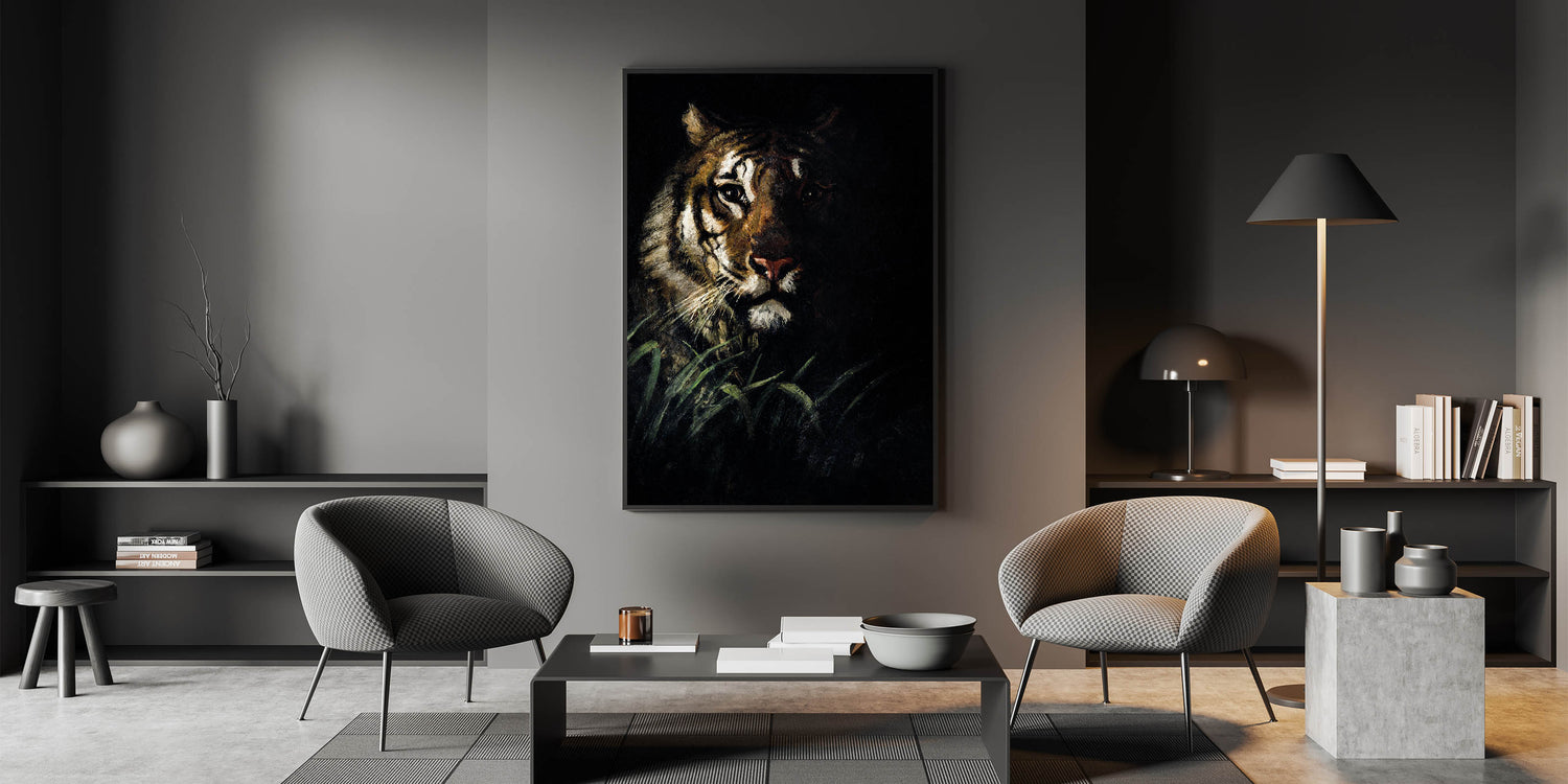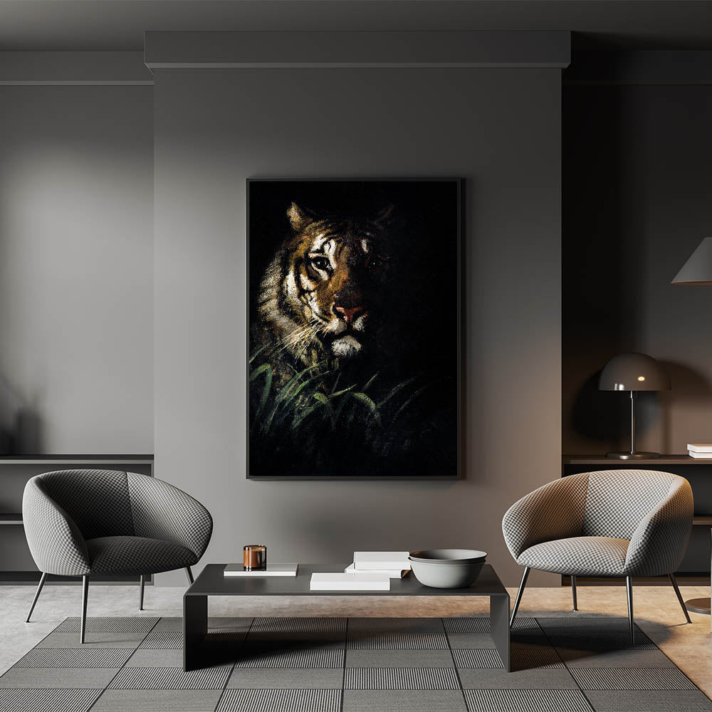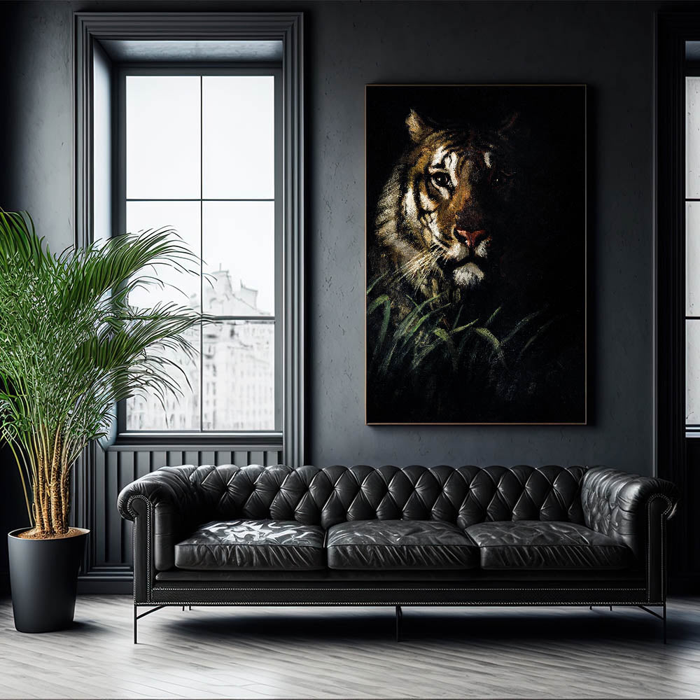 - Grunge-inspired Design: A striking portrayal of a tiger with abstract and distressed textures, perfect for adding a grunge aesthetic to any room.