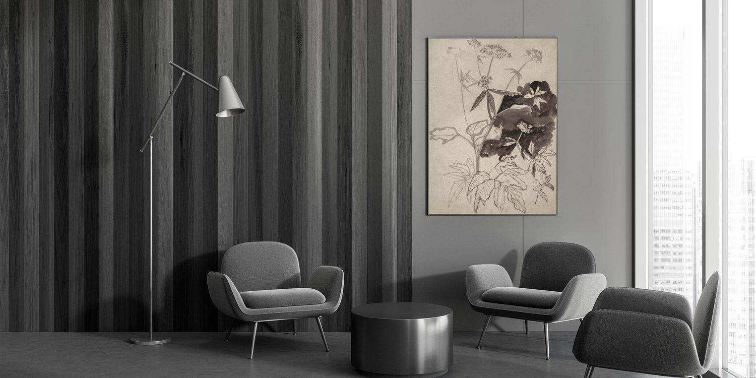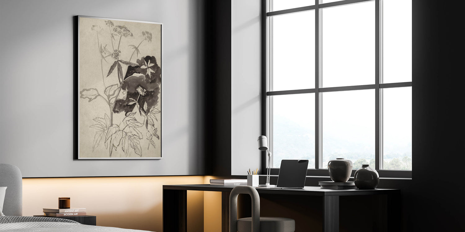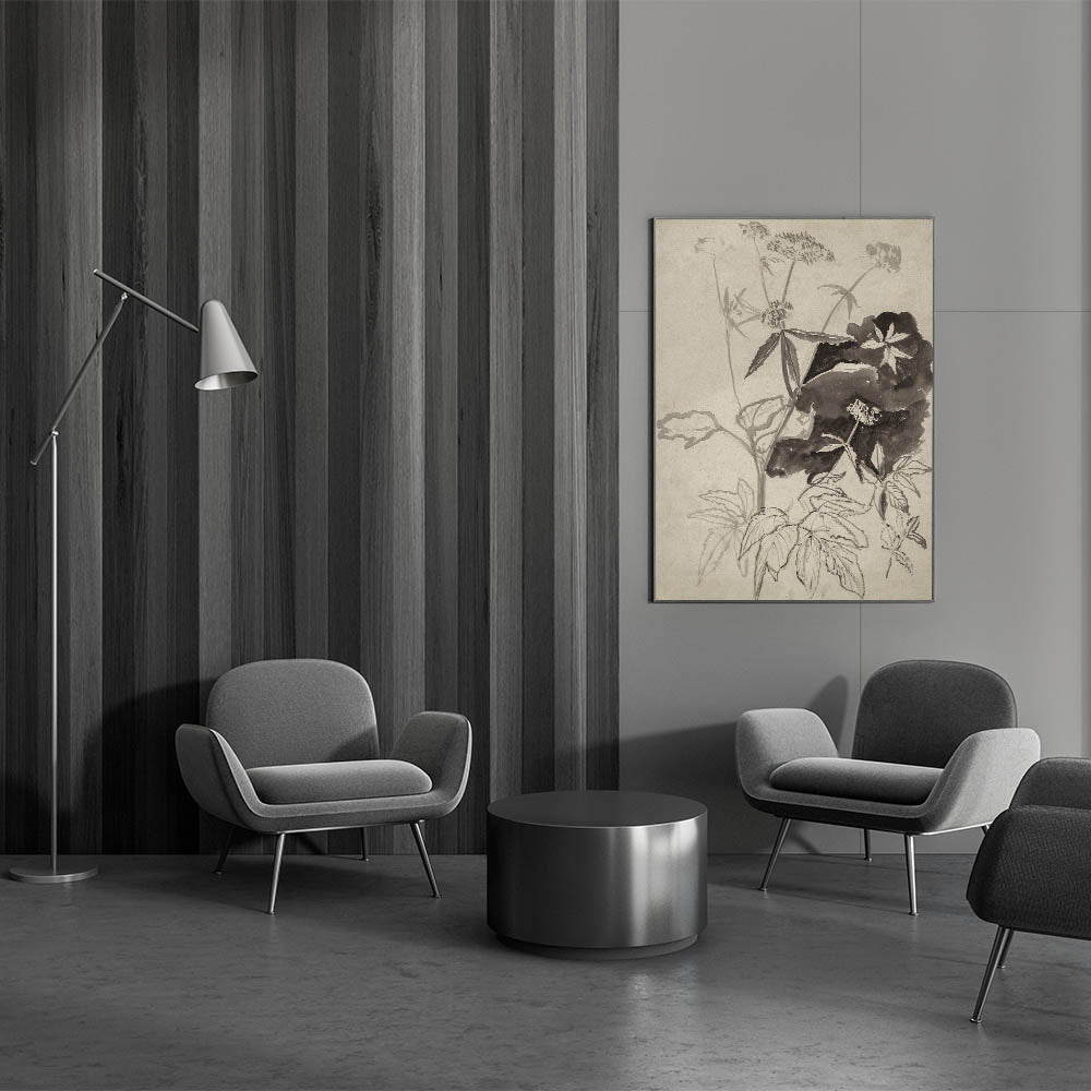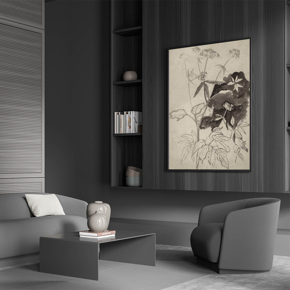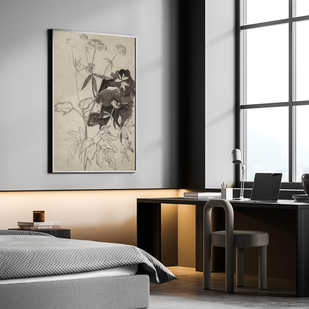 Elevate your decor with this Botanical Grunge Wall Art, featuring a minimalist black and white botanical illustration. This artwork brings an artistic balance of nature and raw grunge design into any space. The blend of delicate floral elements with a distressed, shadowy style gives the piece an understated elegance, making it ideal for modern interiors with a vintage grunge art aesthetic.