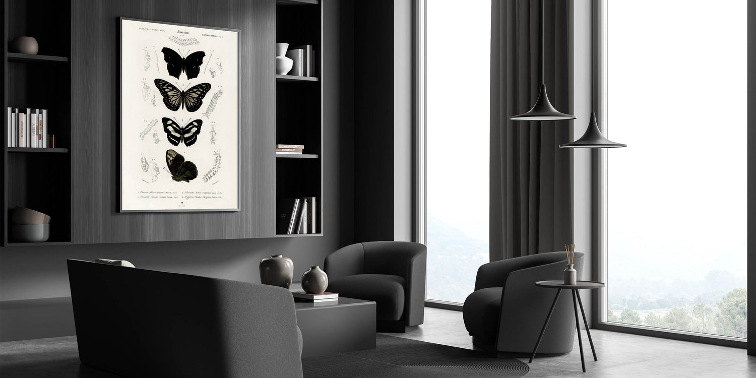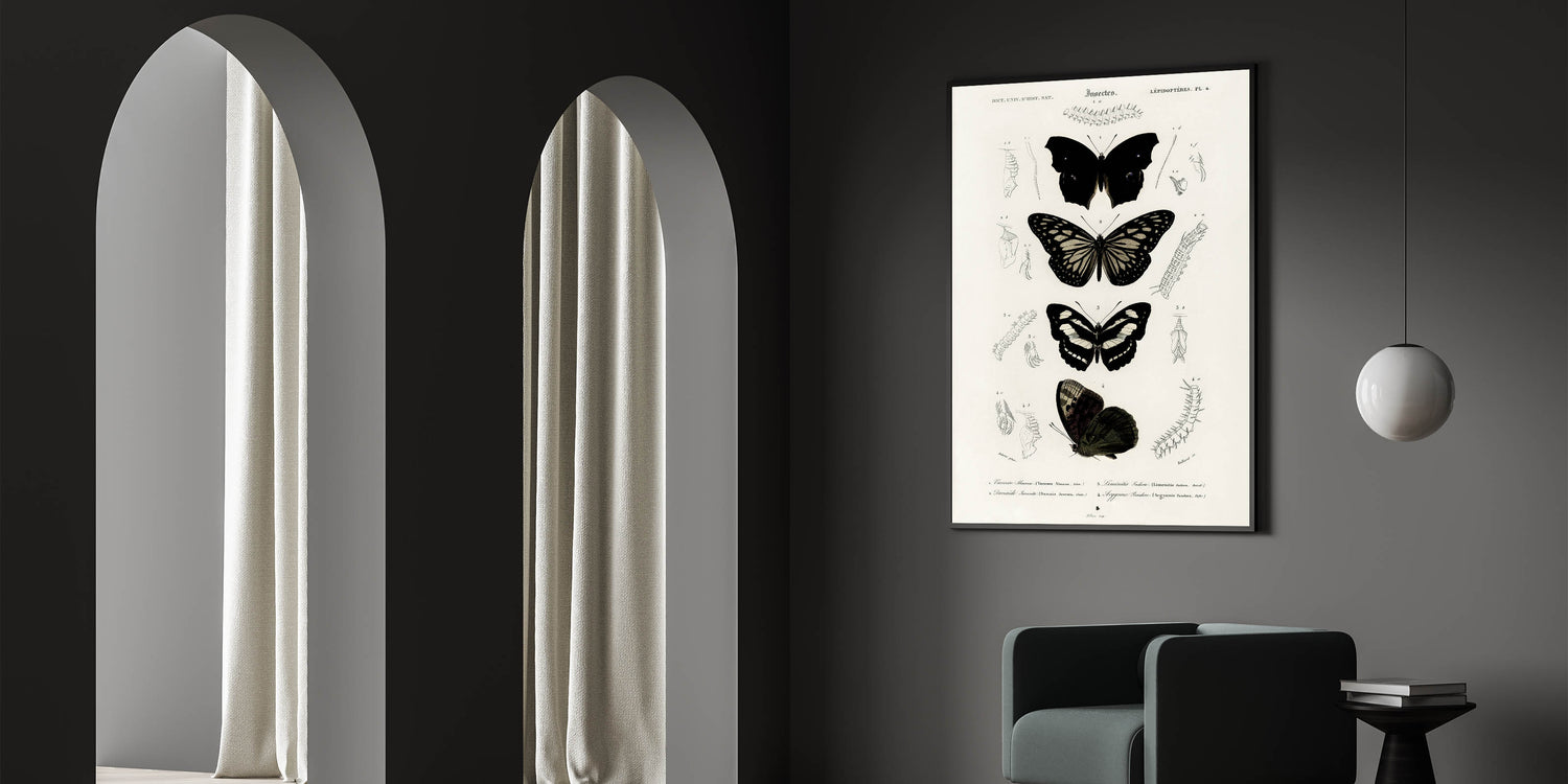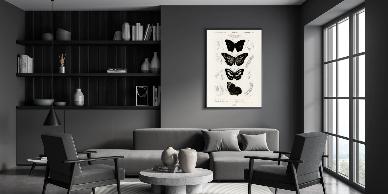 Explore the intricate beauty of butterflies with this grunge-inspired wall decor that features detailed anatomical illustrations of various butterfly species. This black and white print combines vintage aesthetics with a distressed, grunge style, making it perfect for those who appreciate urban grunge art with a scientific twist. The monochrome palette enhances the bold details and sketch-like quality, making it a striking focal point for any space. Ideal for modern, retro, or eclectic interiors, this grunge canvas print adds depth and character to living rooms, offices, or bedrooms, transforming your decor with its sophisticated and edgy appeal.