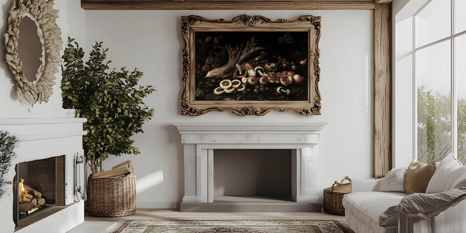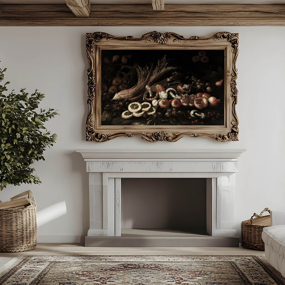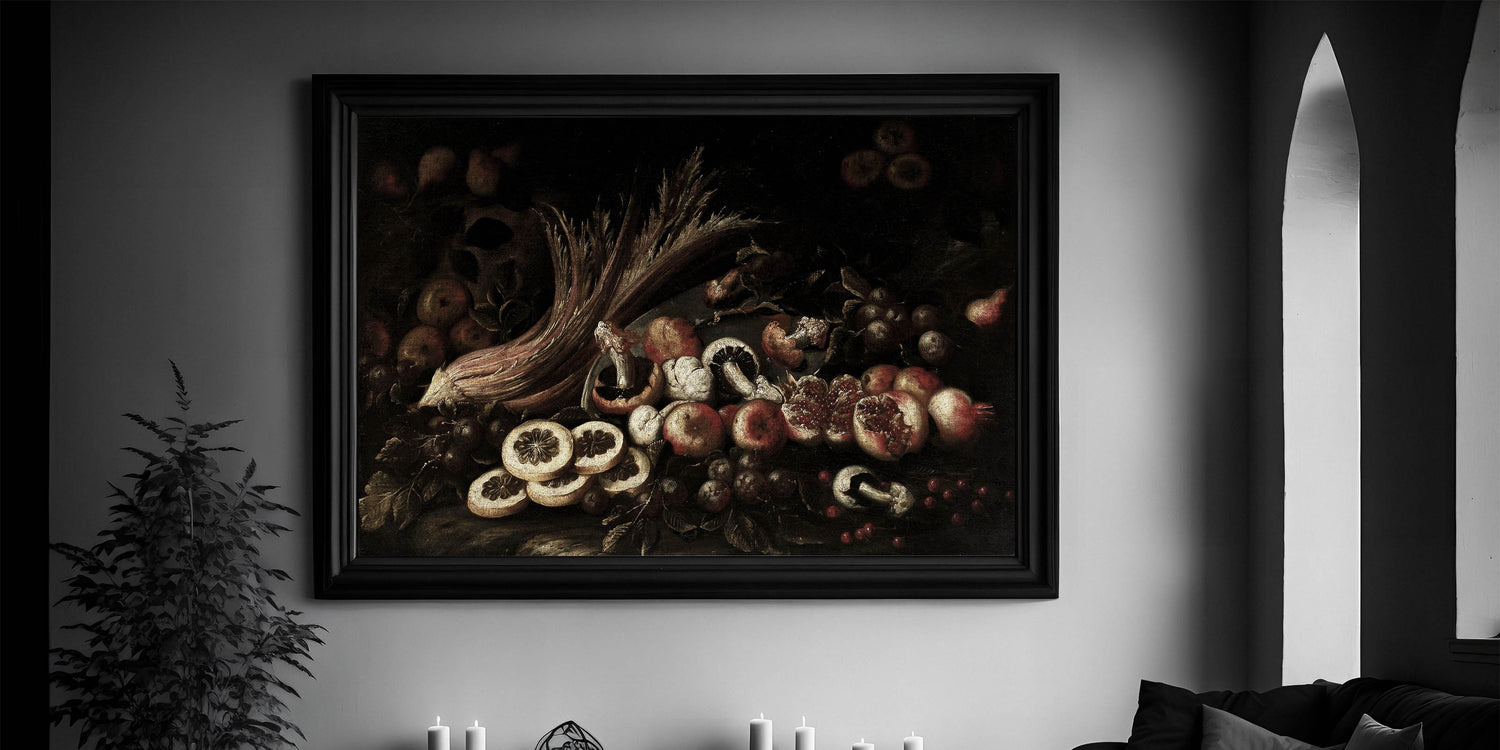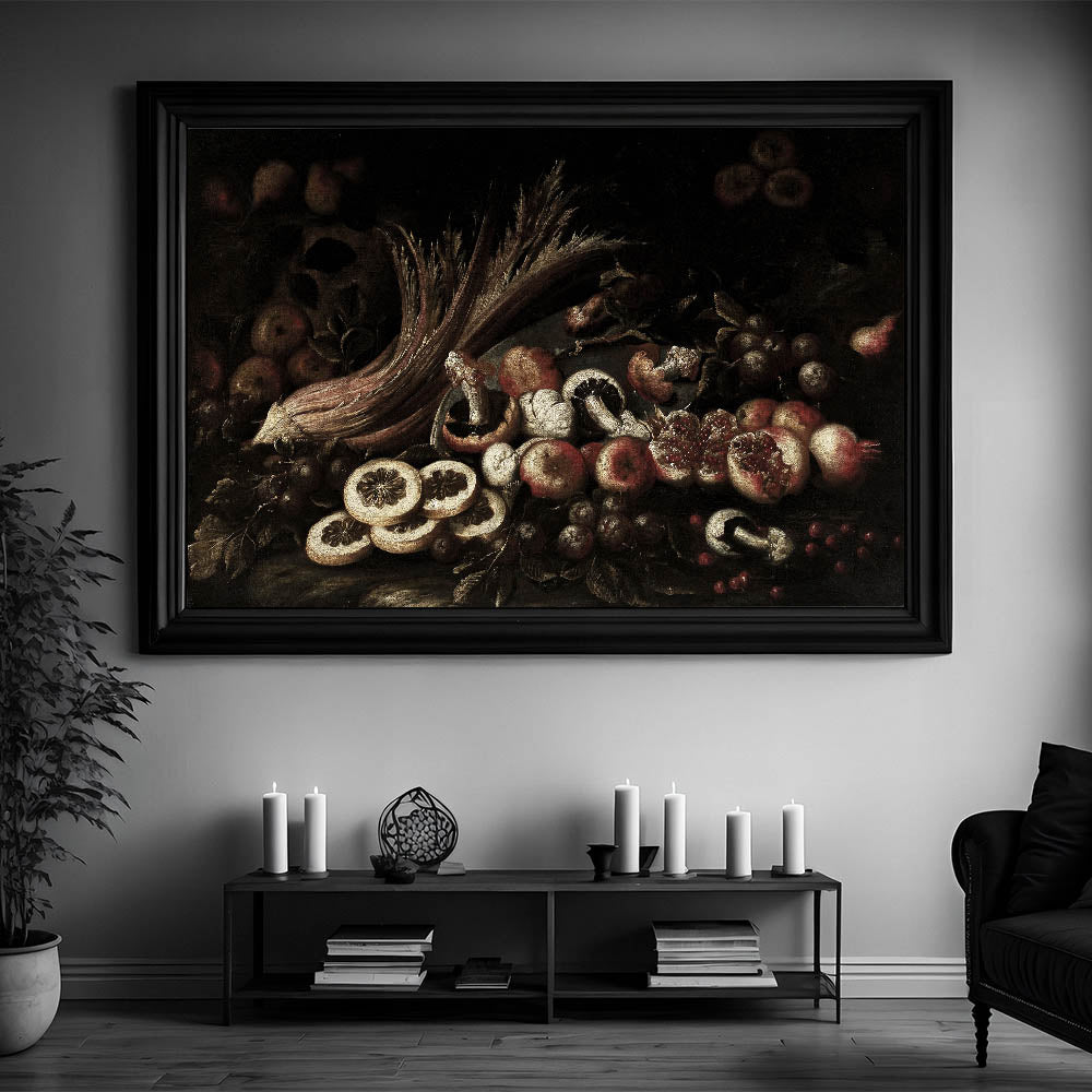 Dark Art Decor - Moody Still Life with Fruits and Rustic Elegance