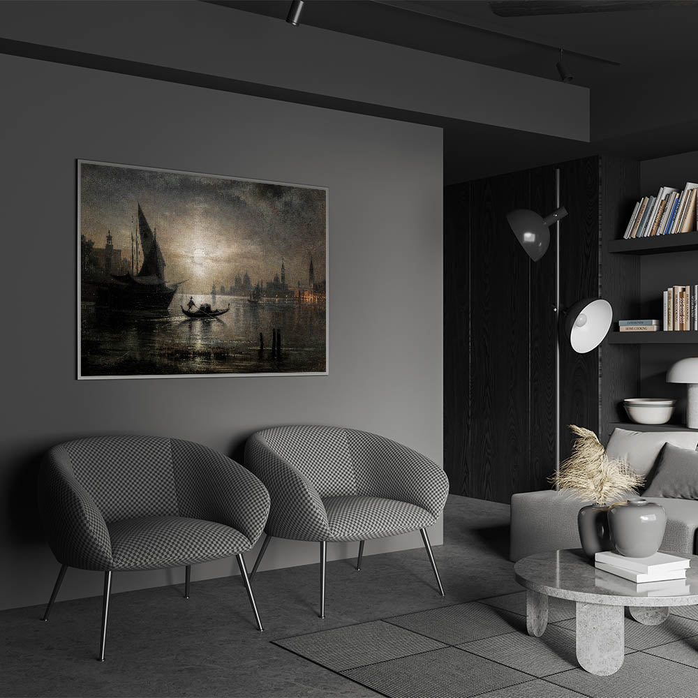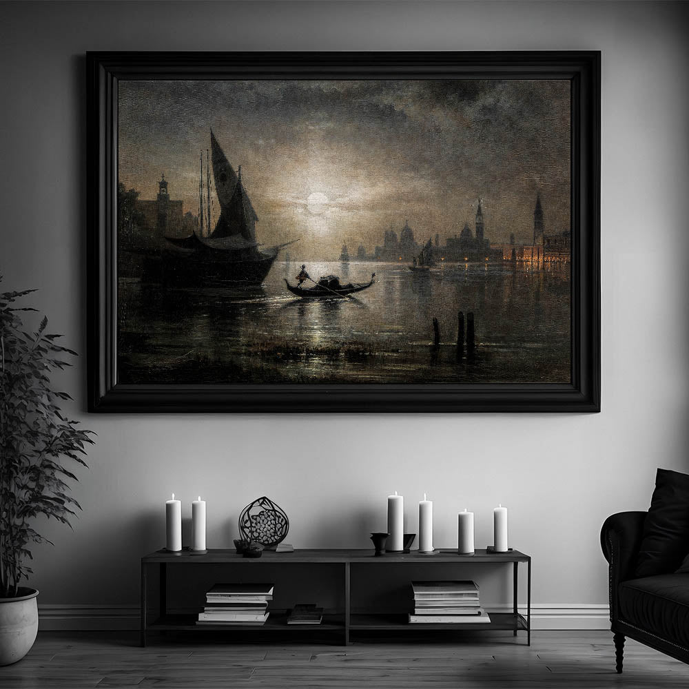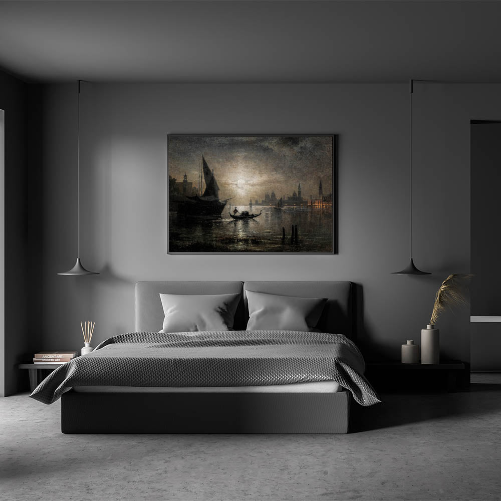 Dark Moody Venice Night Art - Atmospheric Gondola Scene for Interiors