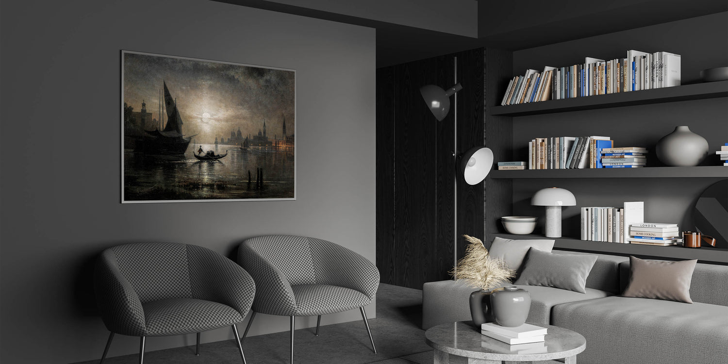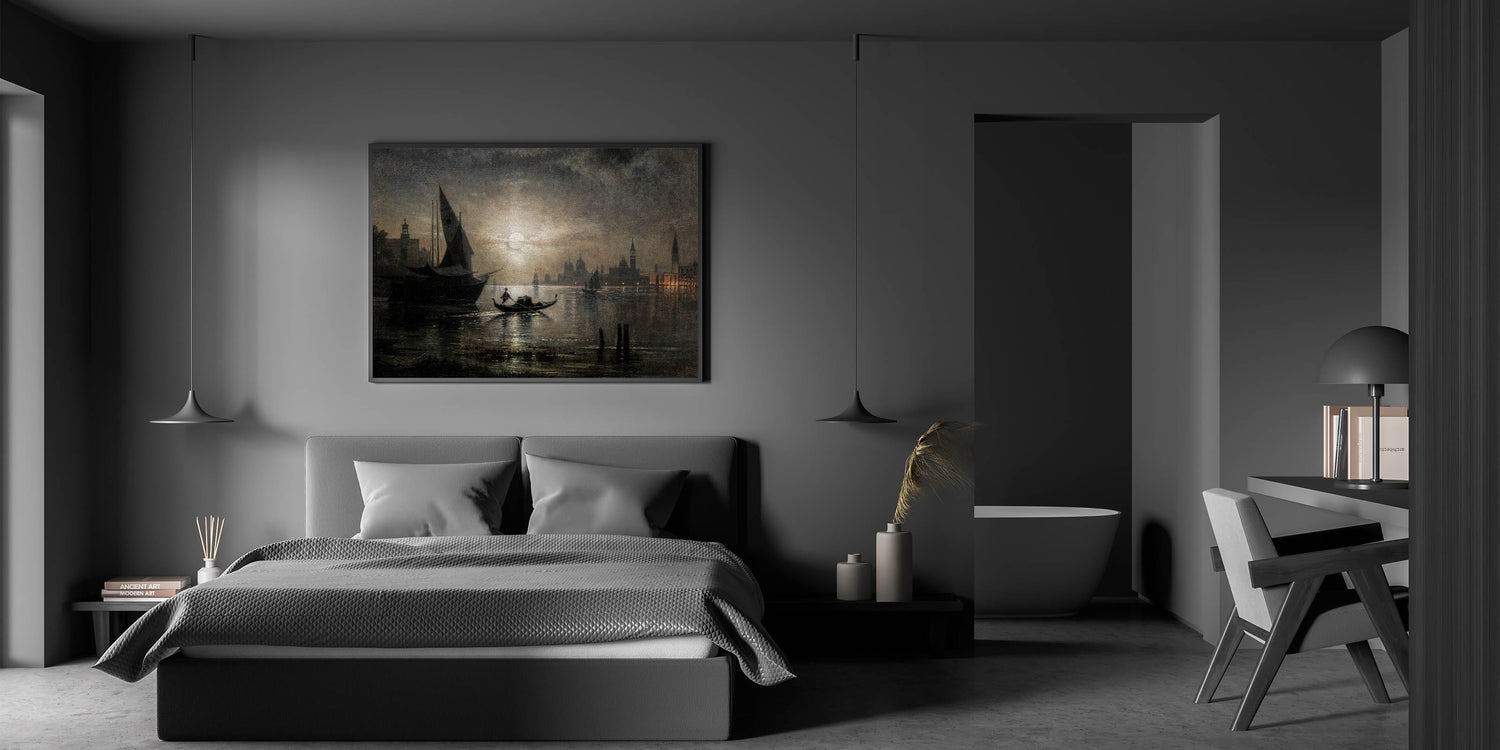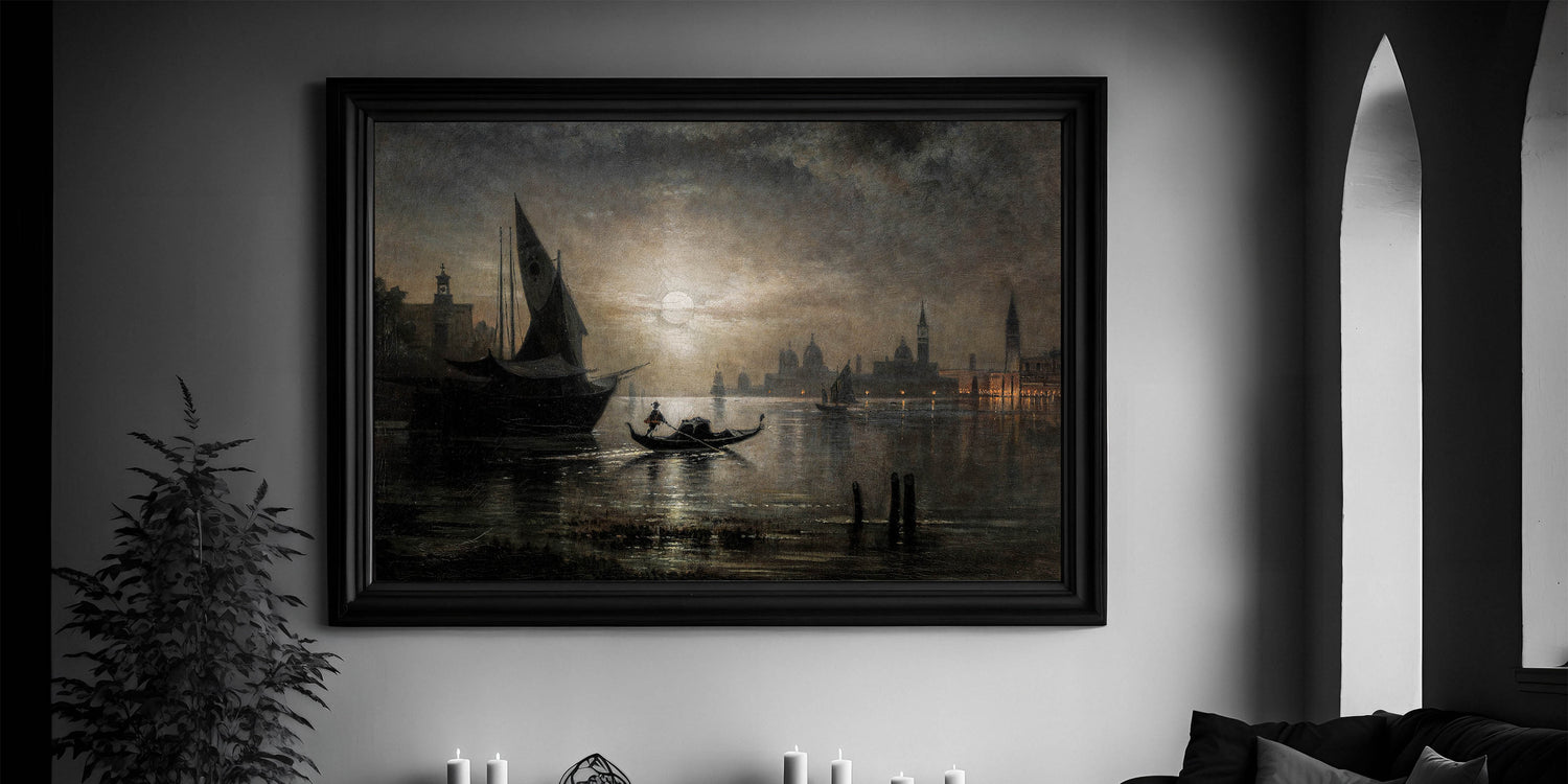 Dark Moody Venice Night Art - Atmospheric Gondola Scene for Interiors