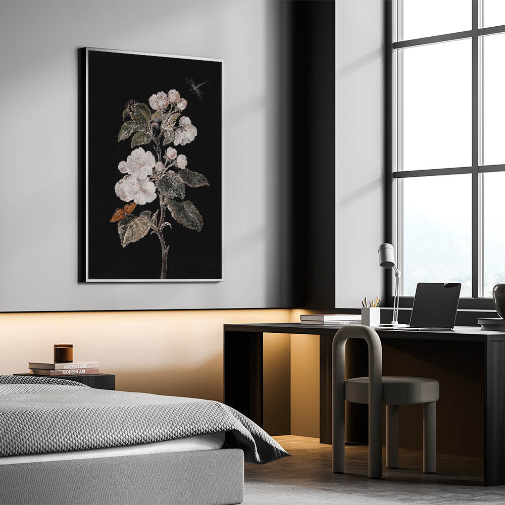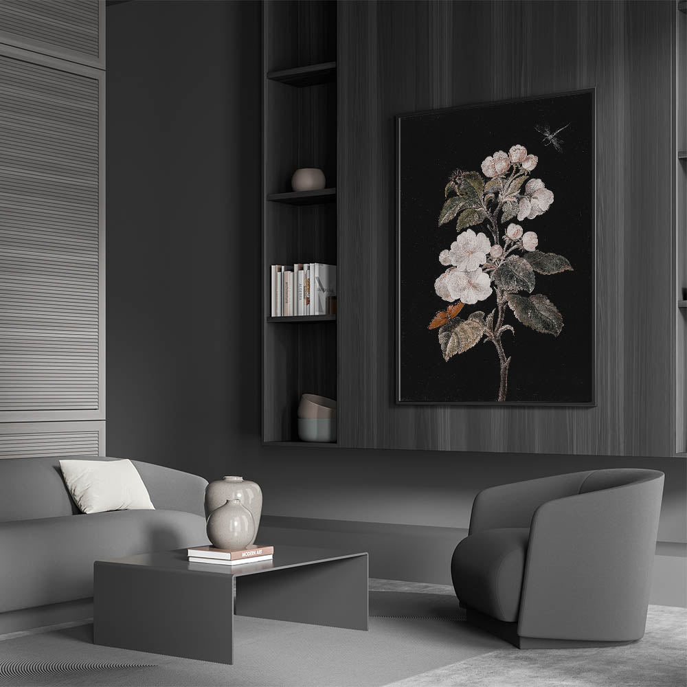 Enhance your space with this stunning Dark Moody Wall Art, featuring an elegant botanical design that captures the beauty of nature with a timeless, moody atmosphere. The intricate details of blooming flowers and delicate butterflies stand out against a deep black background, making this piece the perfect addition to any room that craves a sense of mystery and sophistication. This Moody Art Print seamlessly blends elements of dark art decor with artistic expressions in dark tones, offering a striking focal point for your home decor.