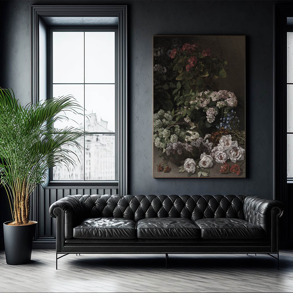 This moody floral artwork is perfect for those who appreciate timeless elegance and nature-inspired beauty, offering a captivating addition to any home decor.
