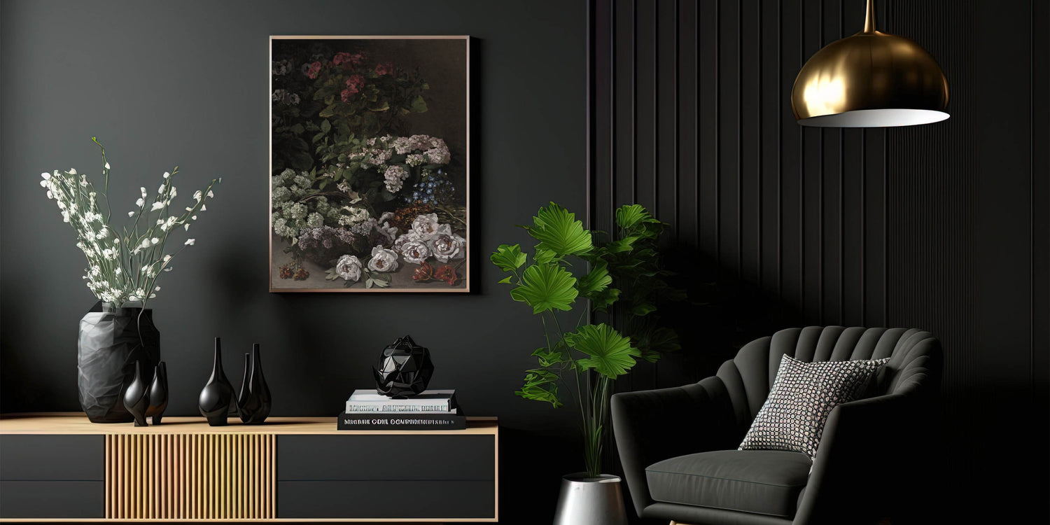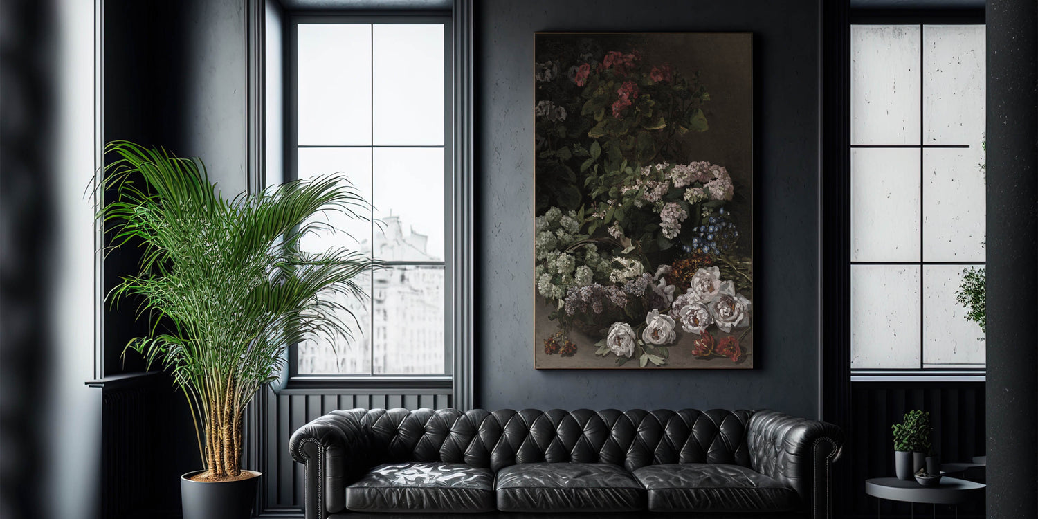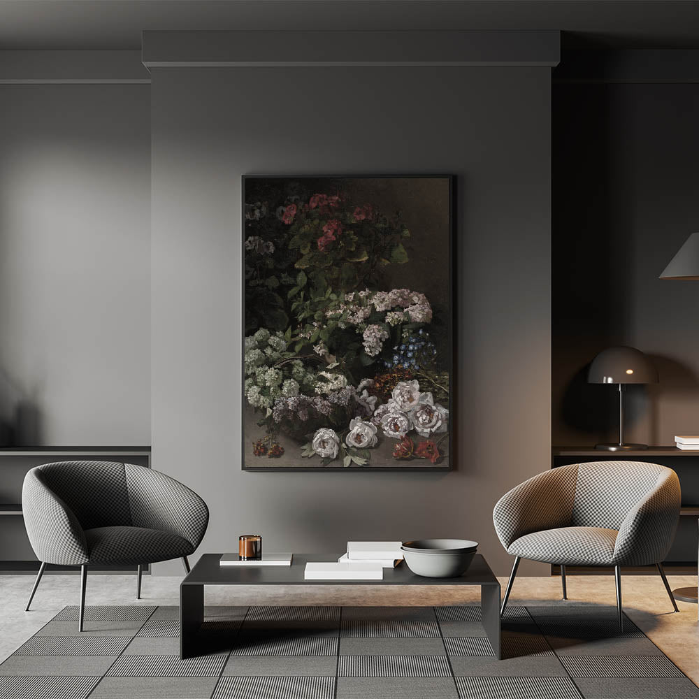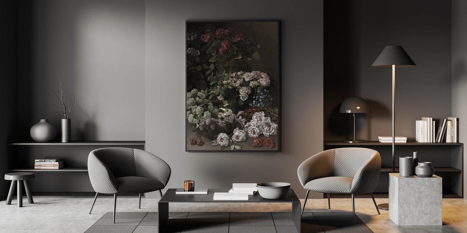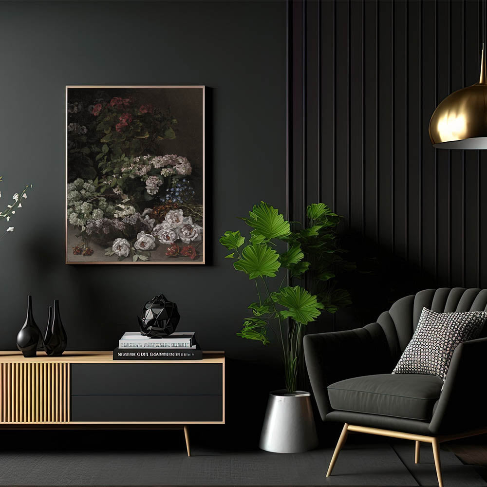 Dark Moody Wall Art - Lush Floral Composition for Elegant Interiors